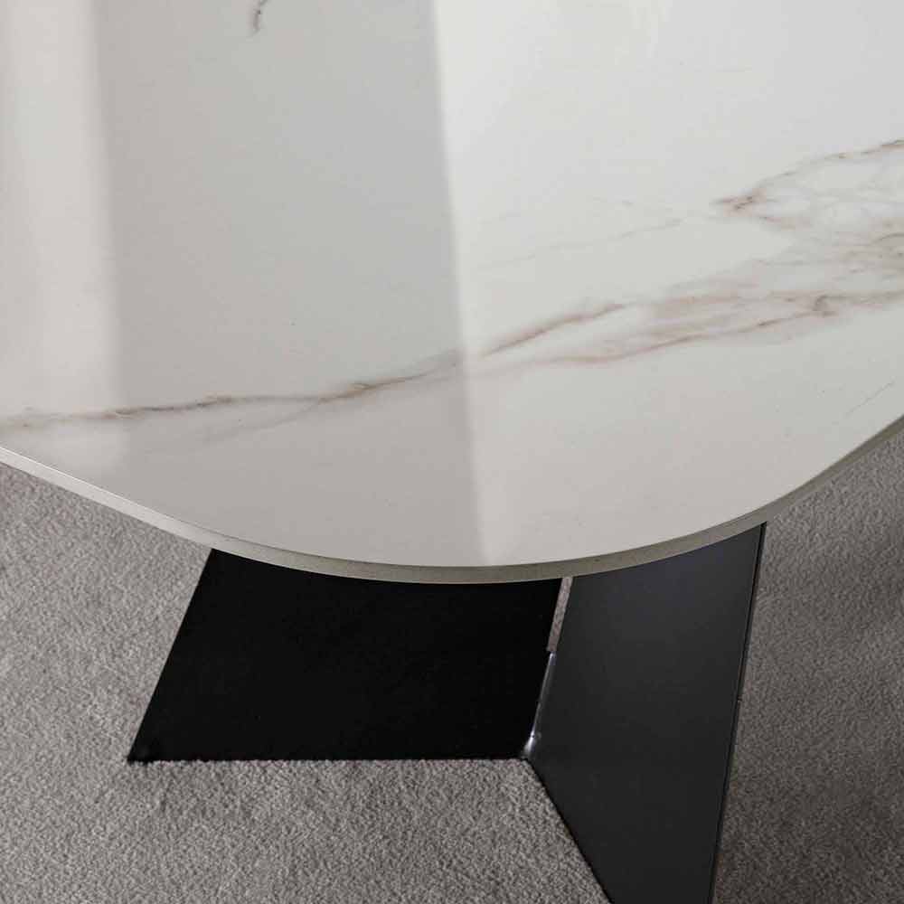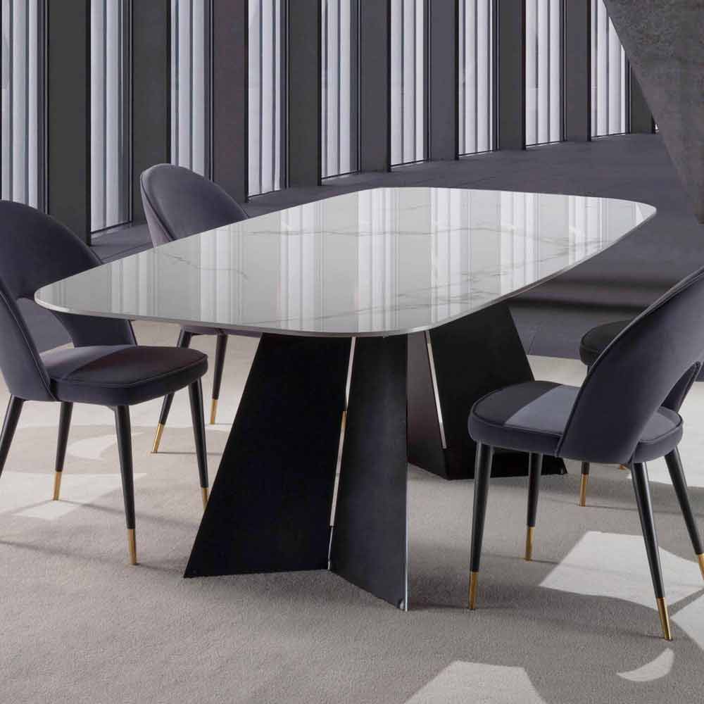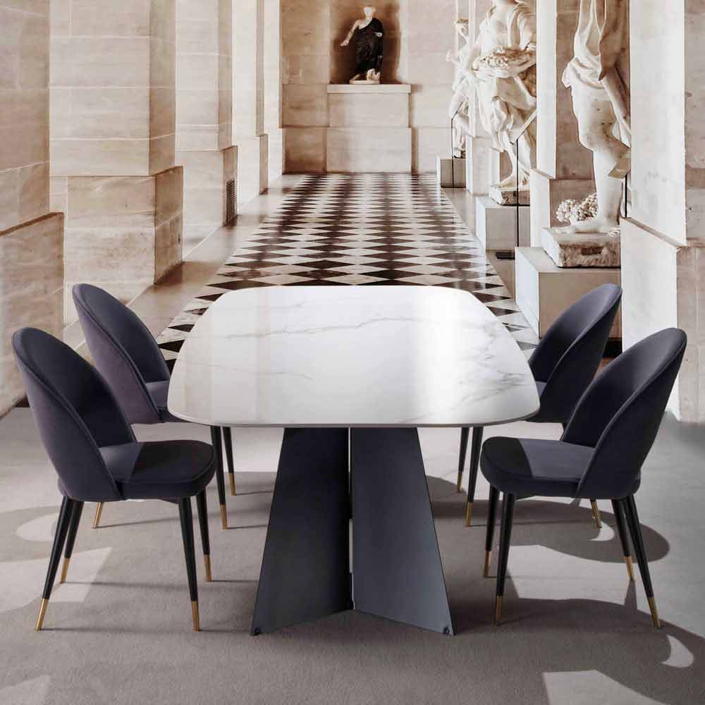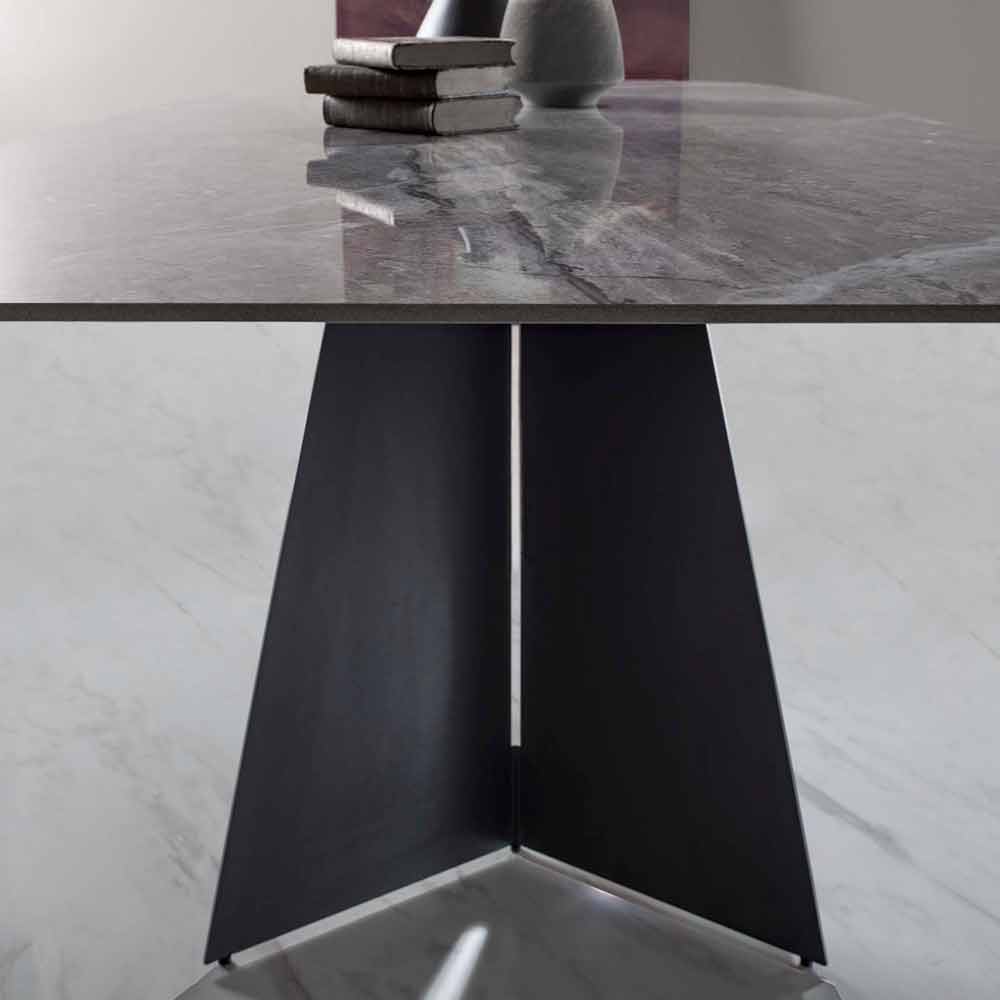 este din oțel vopsit , chiar și picioarele acestei mese sunt un detaliu de design.