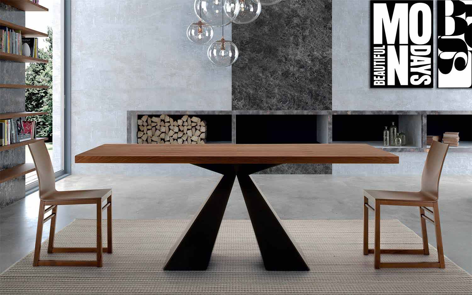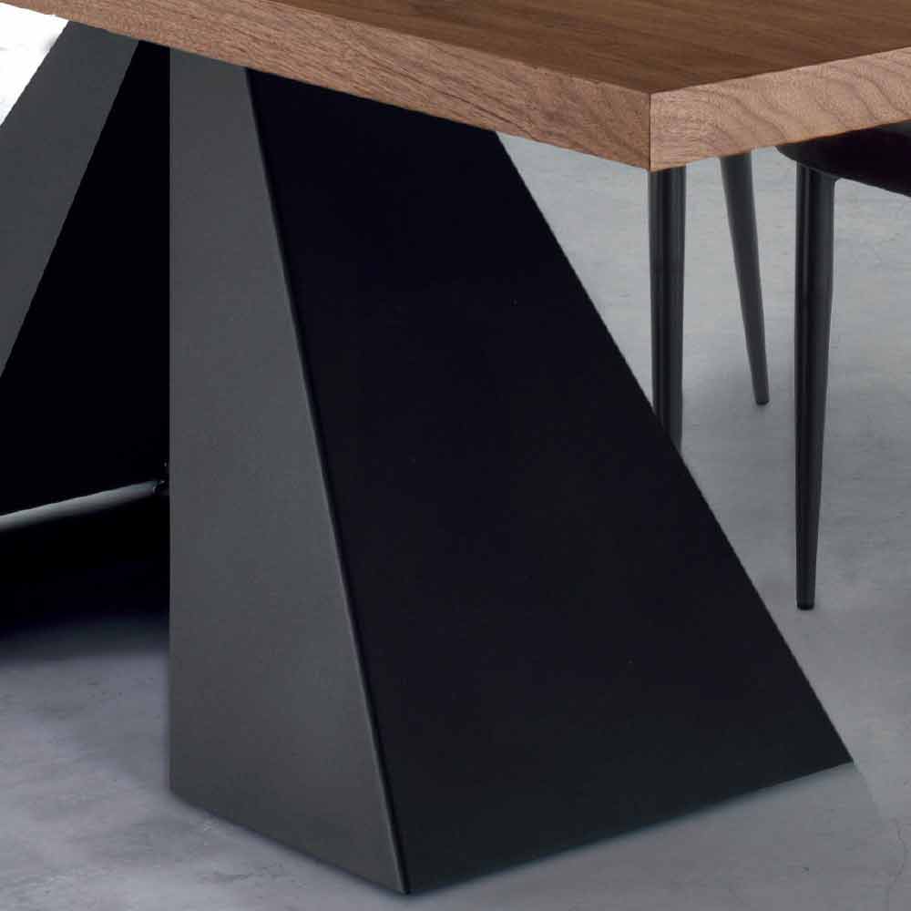 Masa de bucatarie de designer din lemn furniruit de nuc si baza din otel negru fabricata in Italia.