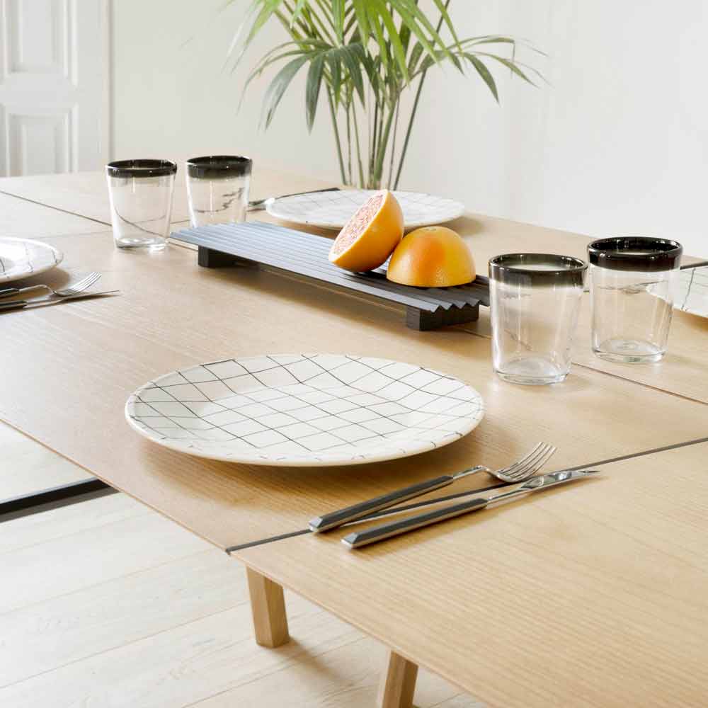 Masă modernă din lemn masiv de frasin cu blat furnir.