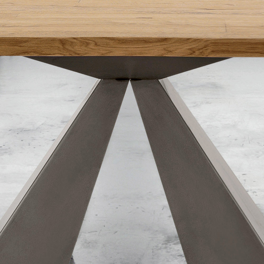 Masa de bucatarie extensibila din lemn furniruit si baza din otel realizata manual in Italia.