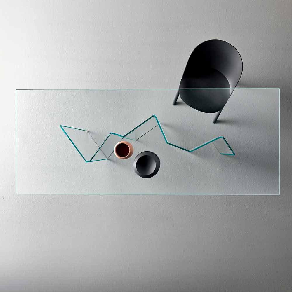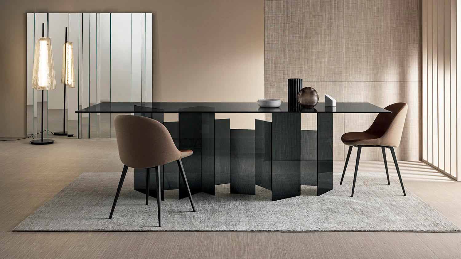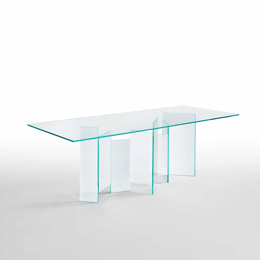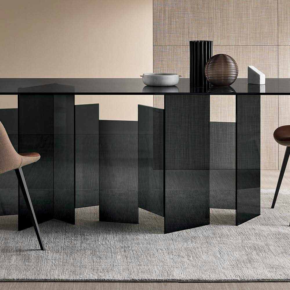 Masă de luat masa cu design modern în sticlă extra-limpede sau afumată, fabricată în Italia.