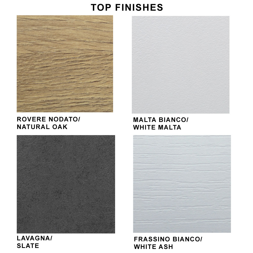 Blatul mesei poate fi personalizat cu diferite finisaje mostre sau lacuri RAL.