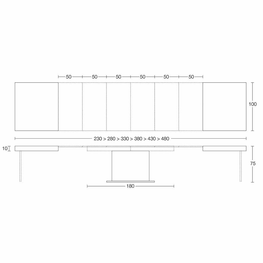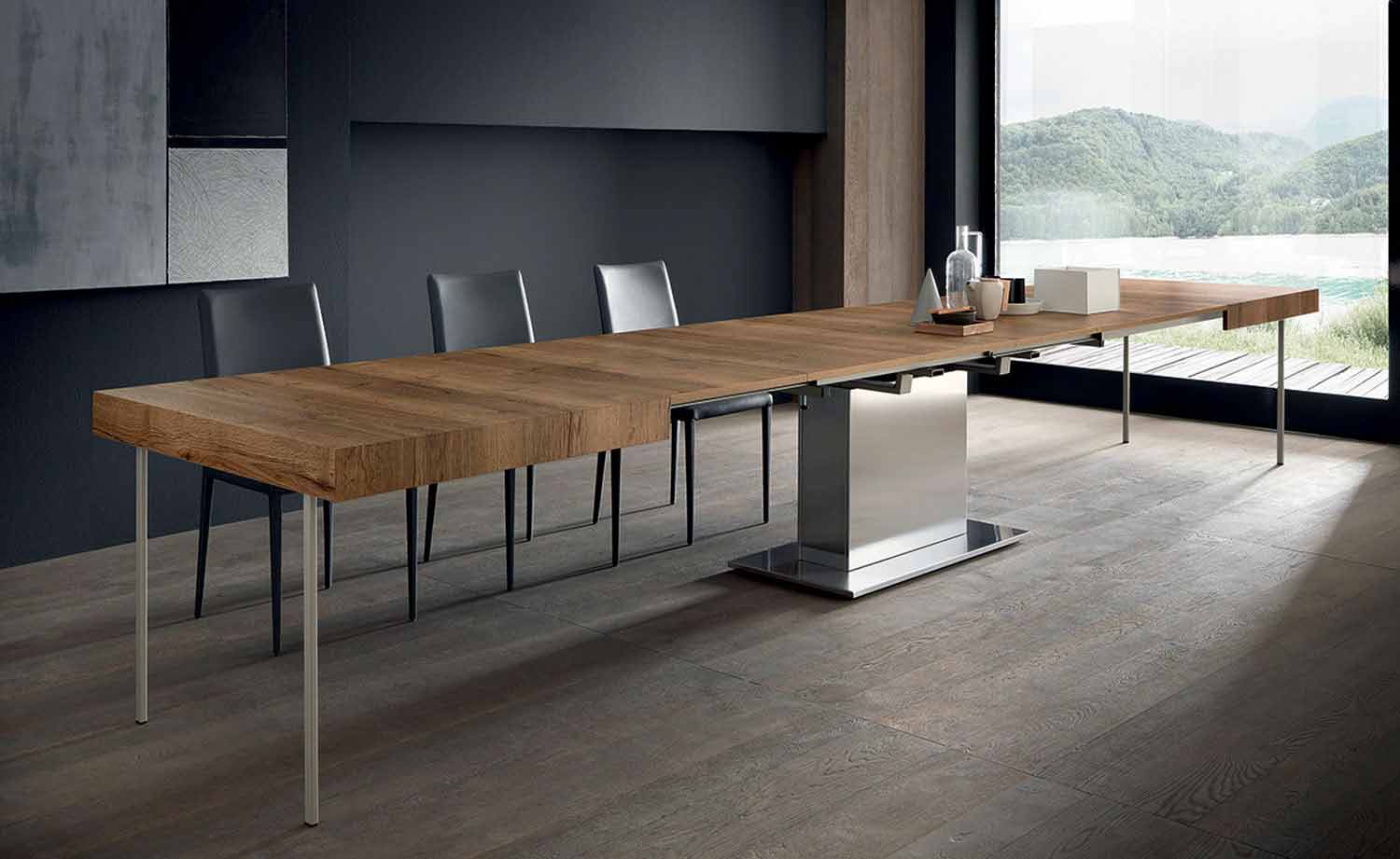 Masa de sufragerie extensibila cu blat din lemn melaminat si baza metalica Made in Italy.