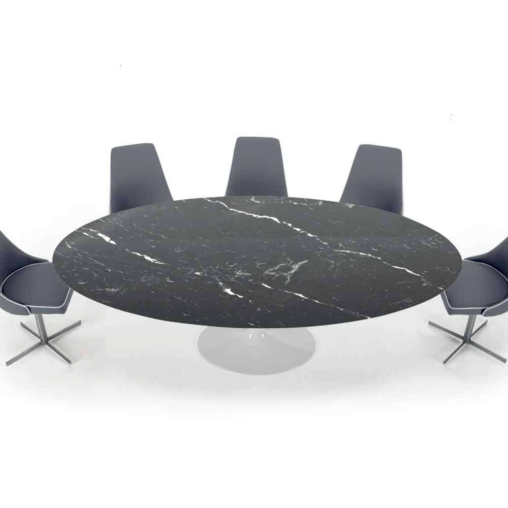 Masa ovala pentru living cu blat din marmura de Carrara sau Nero Marquinia, lucrata manual in Italia.
