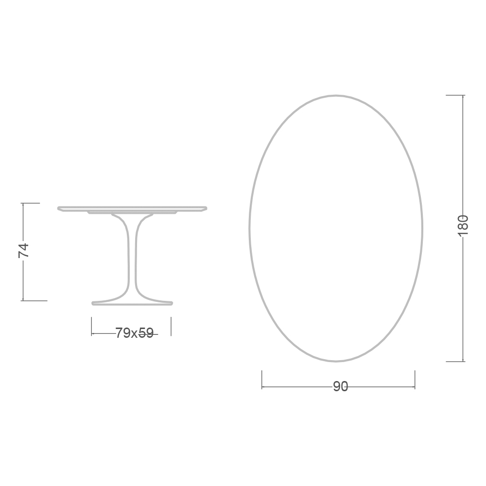 - Blat de masă: 180 x 90 / bază ovală: 79 x 59 cm x H 73 cm