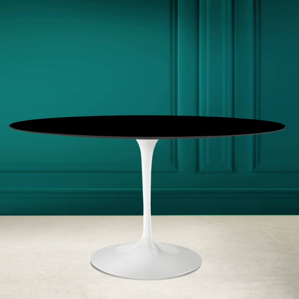 Made in Italy. Această masă are două caracteristici care o fac unică în genul său: forma ovală și ceramica neagră absolută.