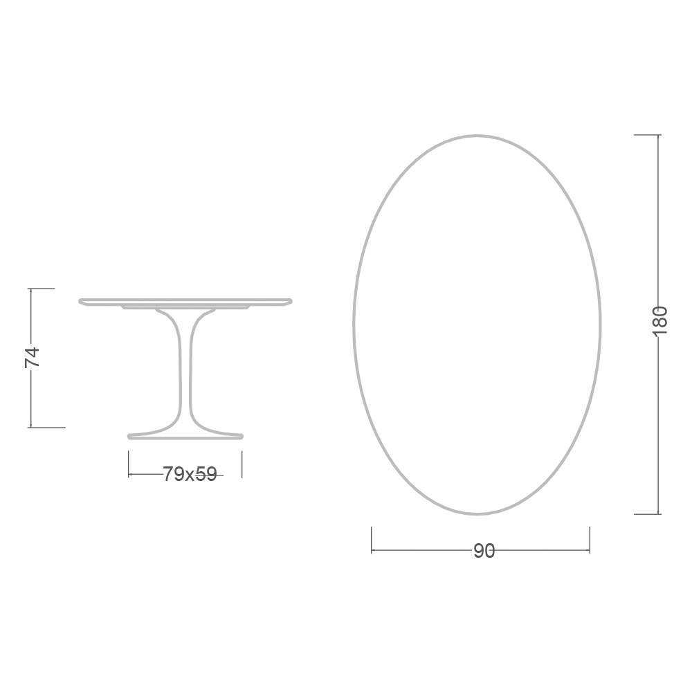- Blat de masă: 180 x 90 / bază ovală: 79 x 59 cm x H 73 cm