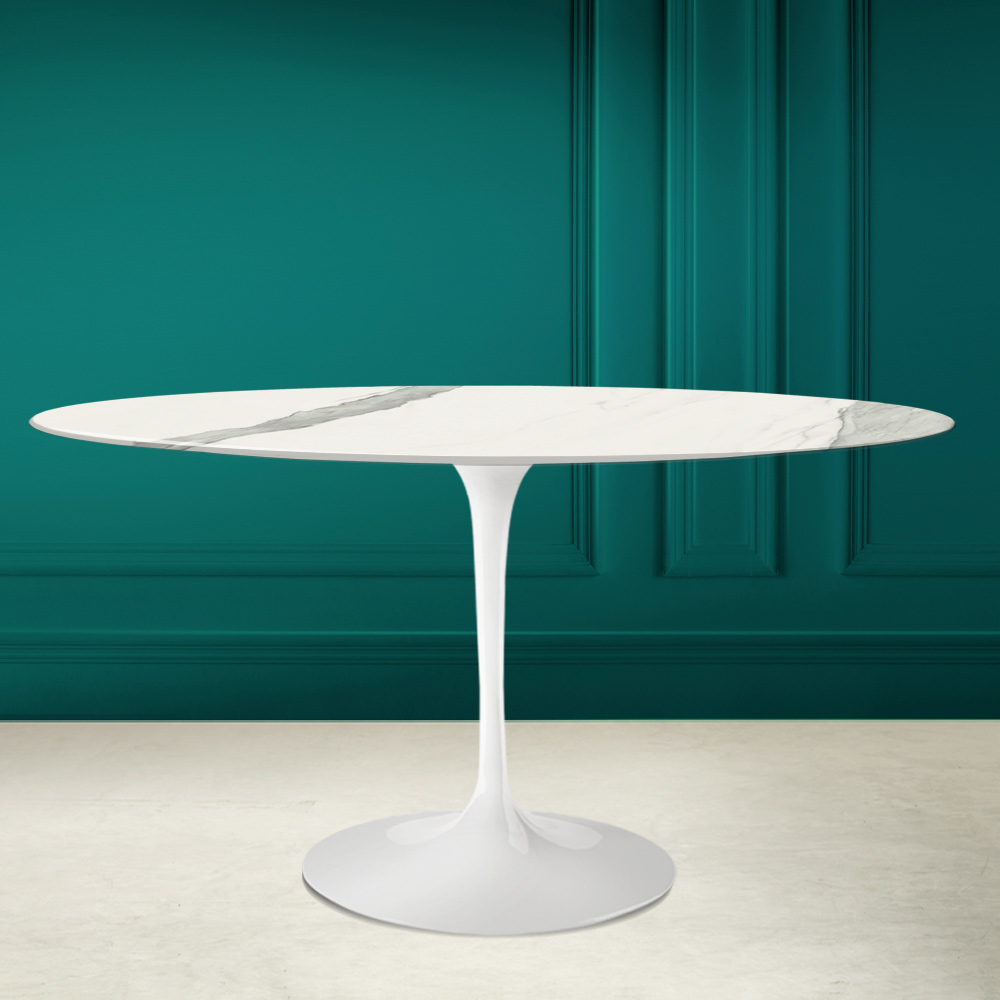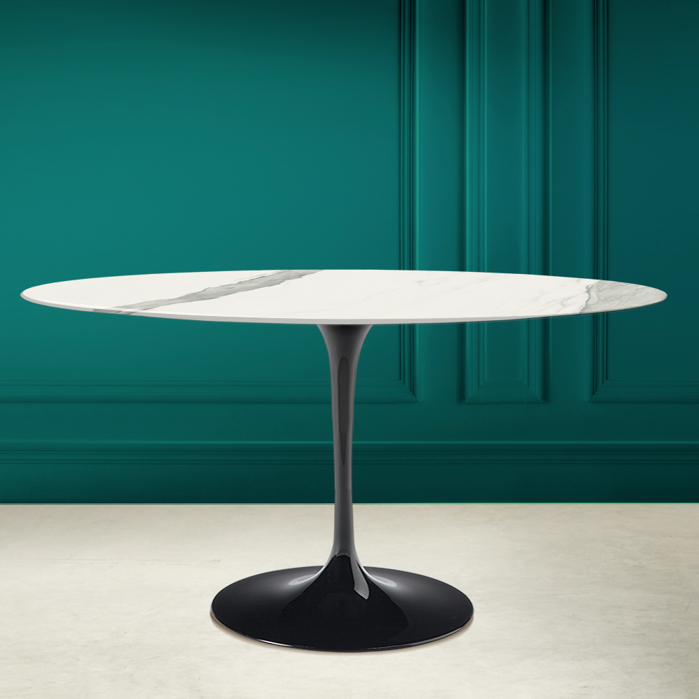 bază din aluminiu lustruit. Această masă este elementul perfect pentru a da o notă originală oricărei camere de zi și bucătării datorită formei ovale și ceramicii statuario fulvein.