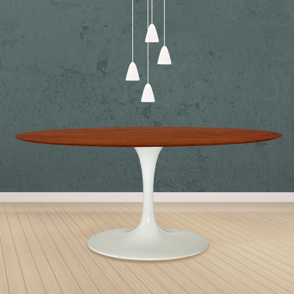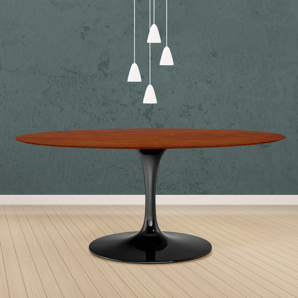 Mesă de dining ovală din stejar vopsit cireș și bază din aluminiu lustruit Made in Italy