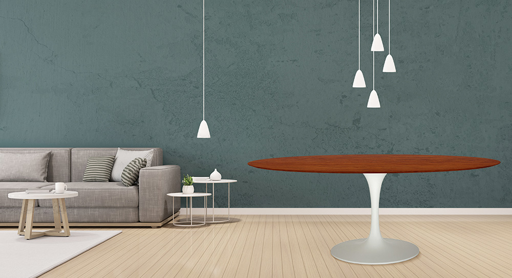 forma ovală și blatul din stejar vopsit cireș conferă acestei mese o