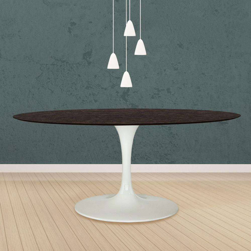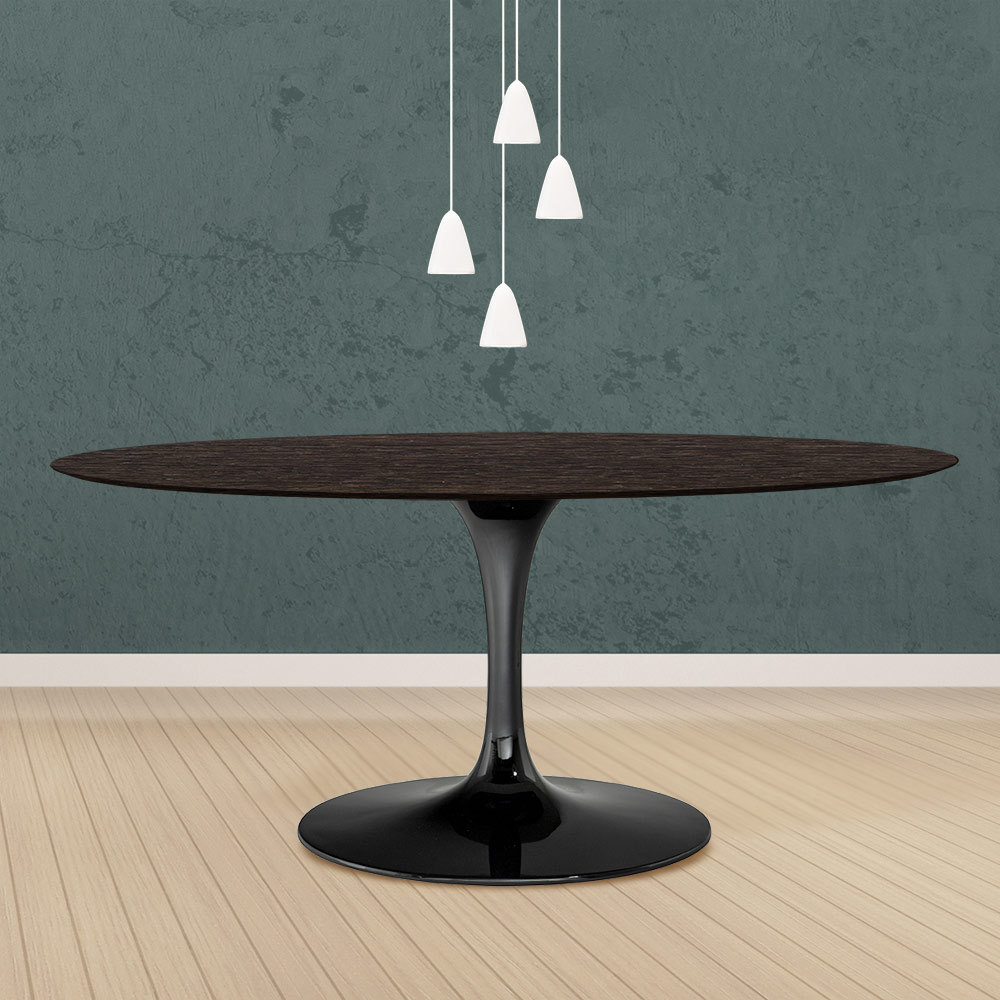 Mesă de dining ovală din stejar vopsit mocha și bază din aluminiu lustruit Made in Italy