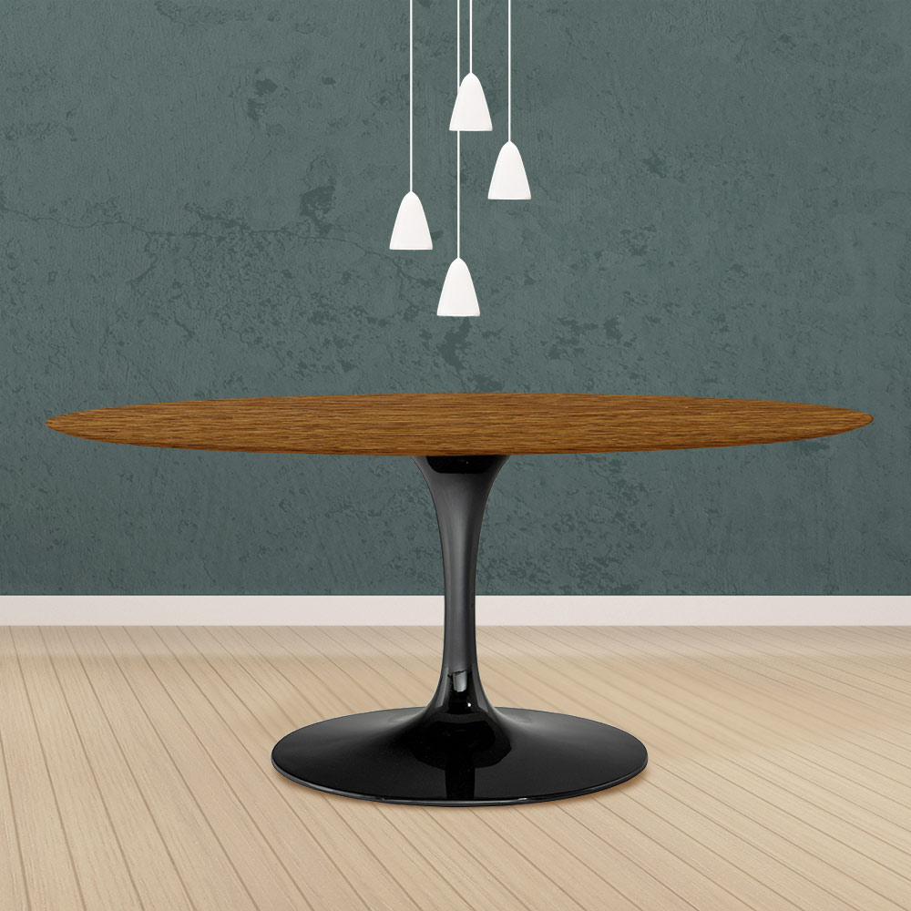 Mesă de dining ovală din stejar vopsit nuc deschis și bază din aluminiu lustruit Made in Italy