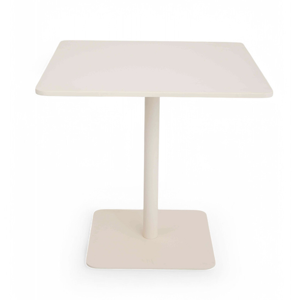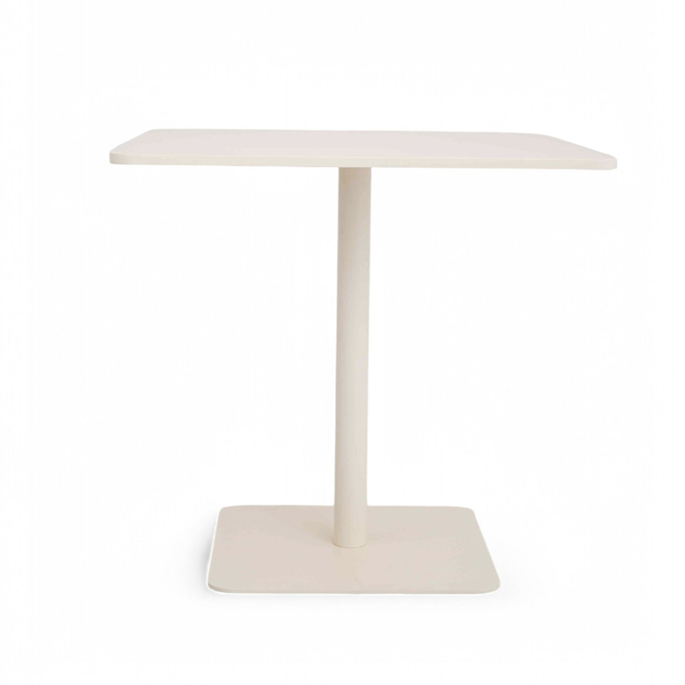 Rama este realizată din aluminiu acoperit cu pulbere , un material rezistent la intemperii, asigurând durabilitate și stabilitate chiar și în cele mai solicitante condiții. Blatul pătrat, cu colțuri ușor rotunjite, adaugă o notă de delicatețe designului esențial, făcându-l potrivit atât pentru un stil modern, cât și clasic.