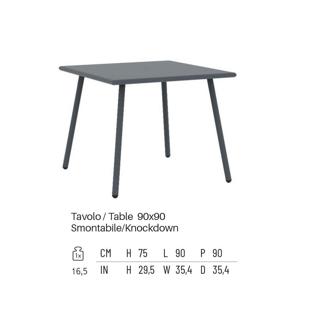 Proporțiile sale armonioase și echilibrate o fac un accesoriu de mobilier perfect pentru spațiile de locuit interioare și exterioare . Versatilitatea acestei mese constă tocmai în procesul de galvanizare , care îi conferă siguranță împotriva agenților atmosferici, fiind rezistentă la uzură. Producția durabilă provine din materiale reciclate , care nu prezintă nicio degradare a proprietăților lor mecanice.
