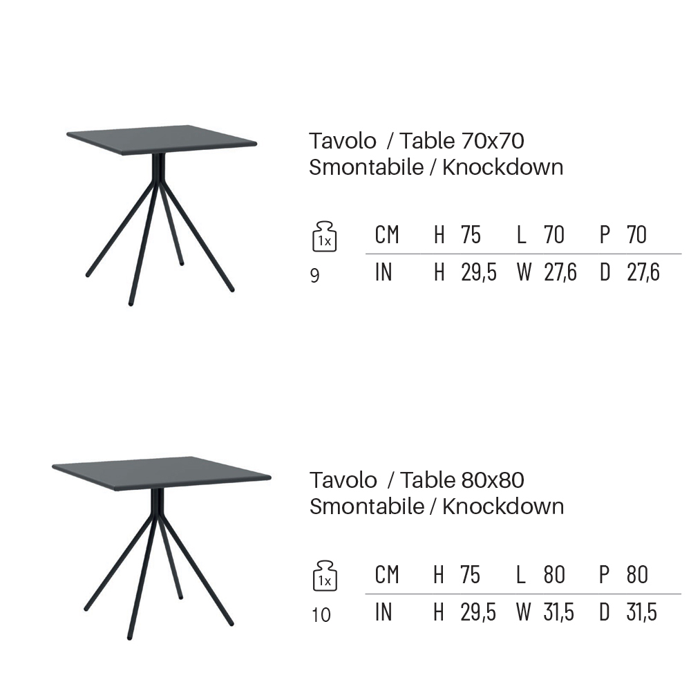 Masă pătrată de grădină cu structură din oțel galvanizat 100% fabricată în Italia