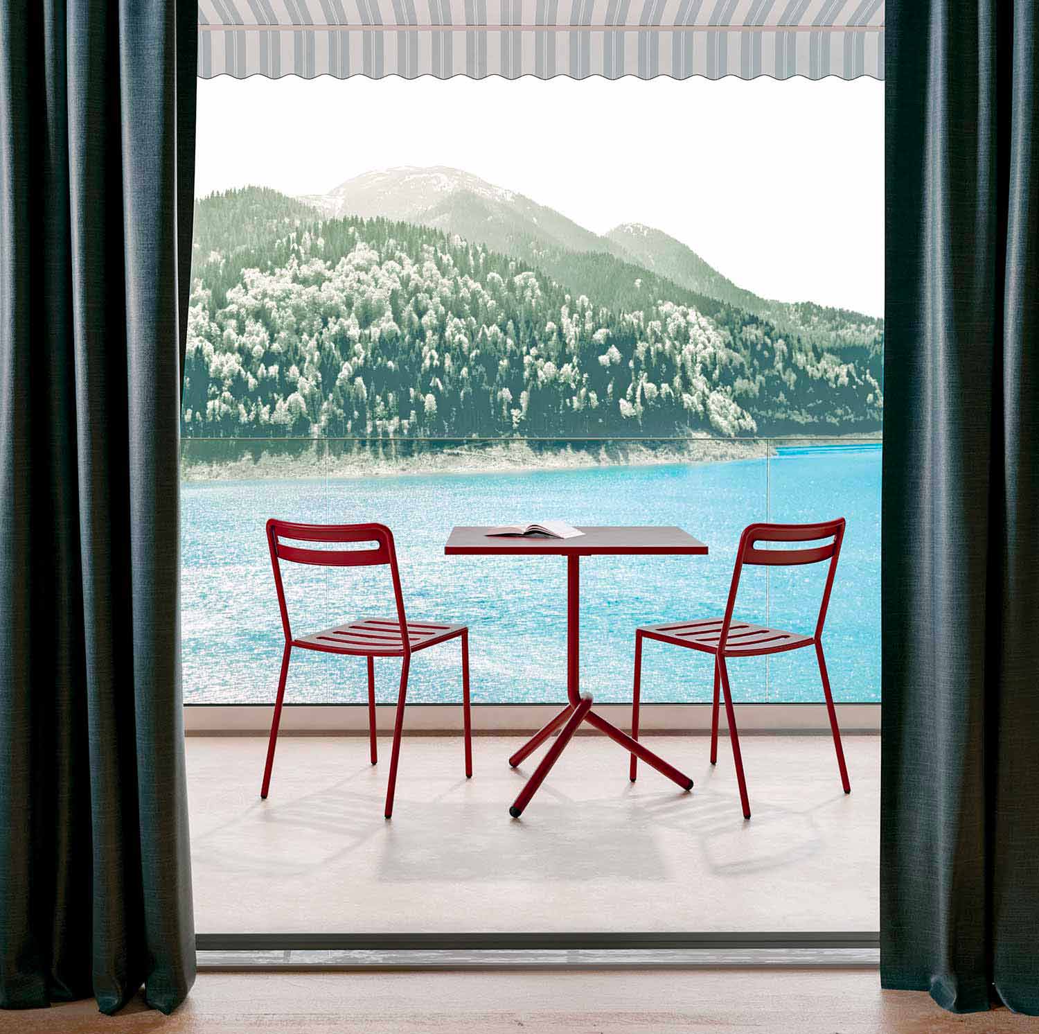 Masuta de cafea exterioara patrata din metal si tabla stivuitoare si pliabila Made in Italy.