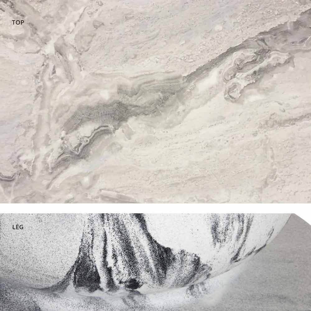 clasic pentru sufragerie , născută datorită colaborării cu producția internă și cercetării continue asupra prelucrării materialului. Așa iau naștere diferite compoziții, care sunt inspirate din cele mai căutate finisaje din marmură. La jumătatea distanței dintre măiestrie și industrie, cunoașterea aprofundată a departamentului de producție cu privire la prelucrarea materialelor plastice permite realizarea fiecărei piese a unui finisaj unic, cu toate imperfecțiunile care fac ca munca unui meșter să fie minunată.