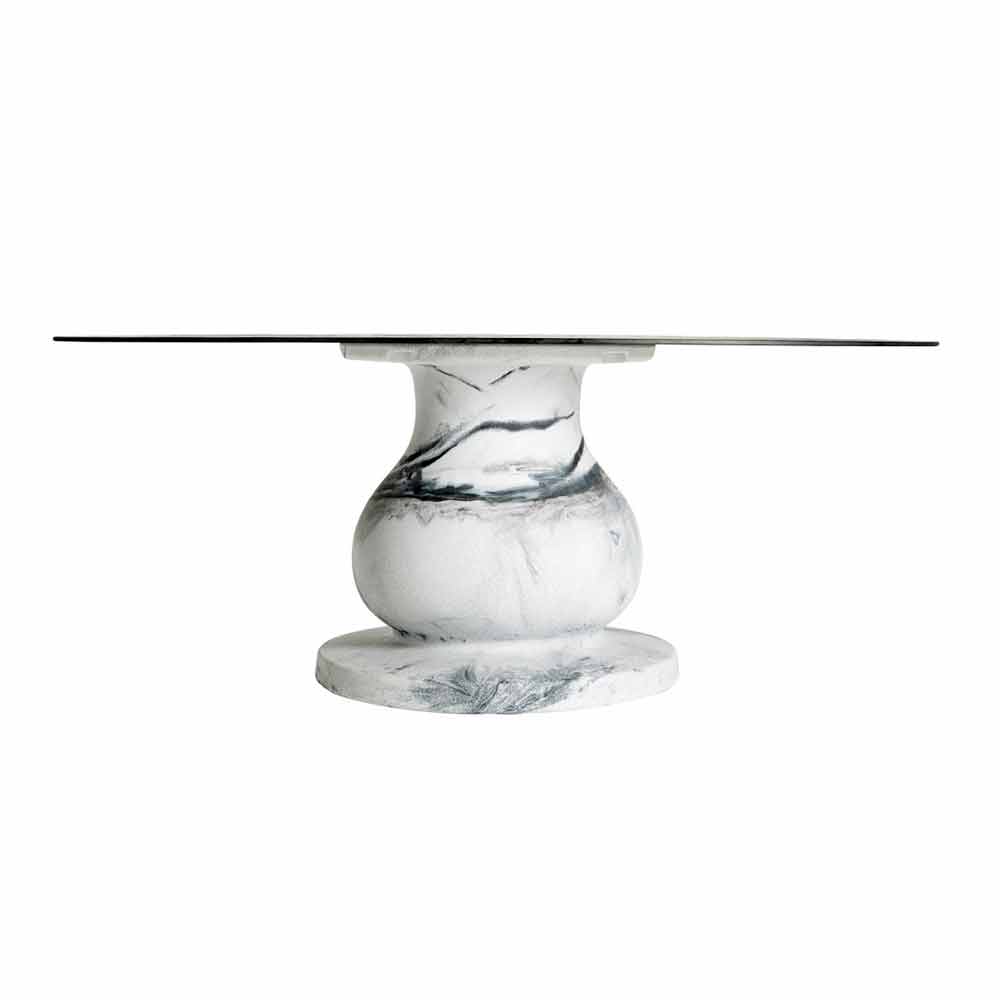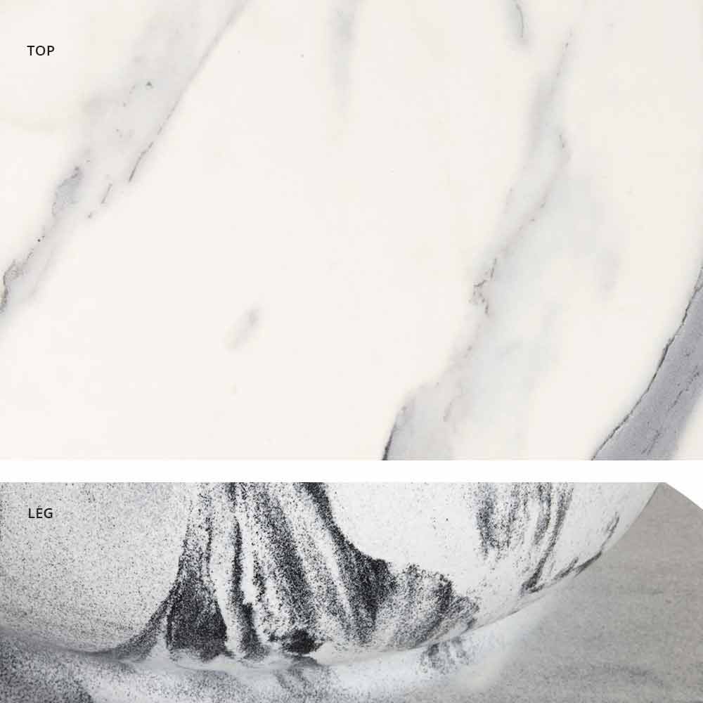 clasic pentru sala de mese , nascuta datorita colaborarii cu productia interna si a cercetarii continue asupra prelucrarii materialului. Așa iau naștere diferite compoziții, care sunt inspirate din cele mai căutate finisaje din marmură. La jumătatea distanței dintre măiestrie și industrie, cunoașterea aprofundată a departamentului de producție cu privire la prelucrarea materialelor plastice permite crearea unui finisaj unic în fiecare piesă, cu toate imperfecțiunile care fac minunată munca unui meșter.