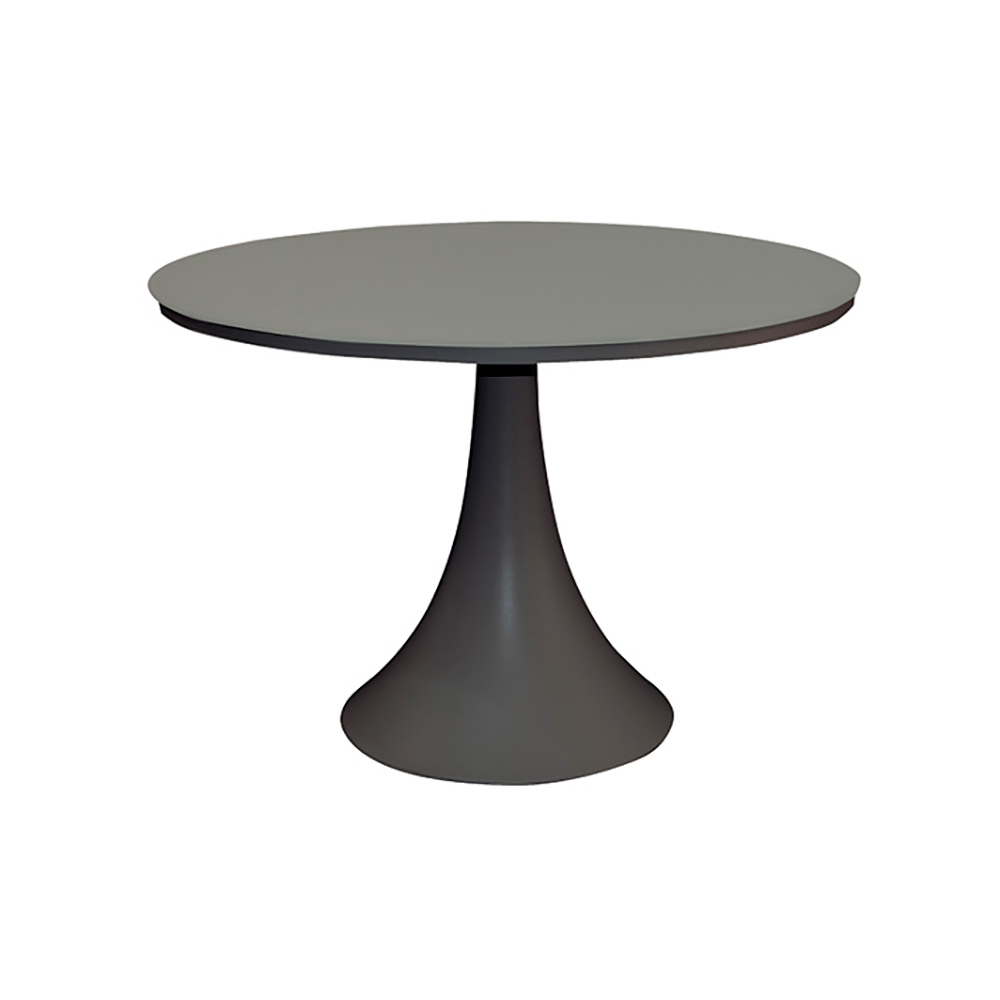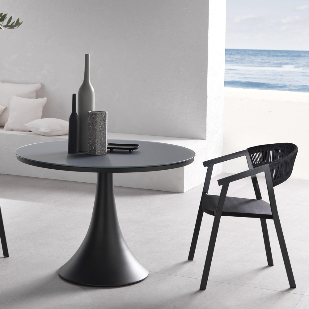 Masa rotunda de gradina cu structura din aluminiu acoperita cu pulbere epoxidica si blat din sticla vopsita in spate