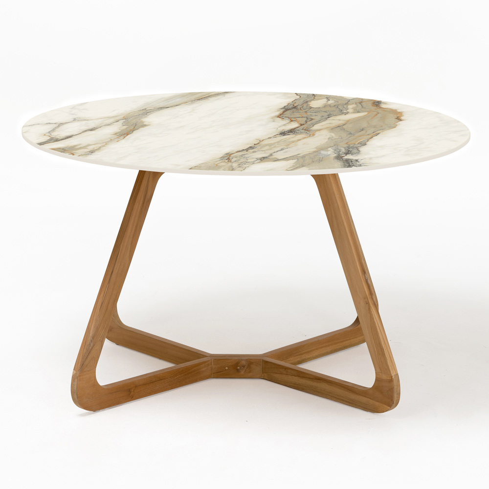 Masă rotundă de grădină din lemn și ceramică, fabricată în Italia