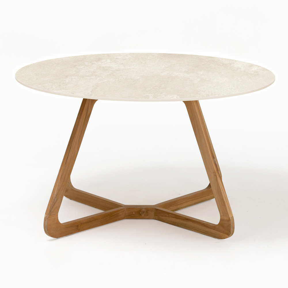 Masă rotundă de grădină din lemn și ceramică, fabricată în Italia