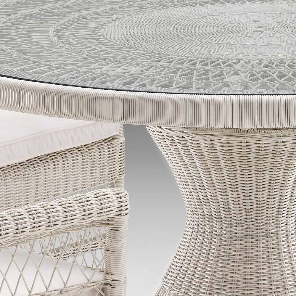 Stilul de țesătură este rafinat și delicat și împreună cu calitatea foarte ridicată a materialelor și formele sale decisive fac ca această masă să fie perfectă pentru amenajarea interioară și exterioară, atât pentru mediul privat, cât și pentru cel contractual, cum ar fi terasele, verandele, grădinile, dar își găsesc și o locație perfectă lângă piscină.