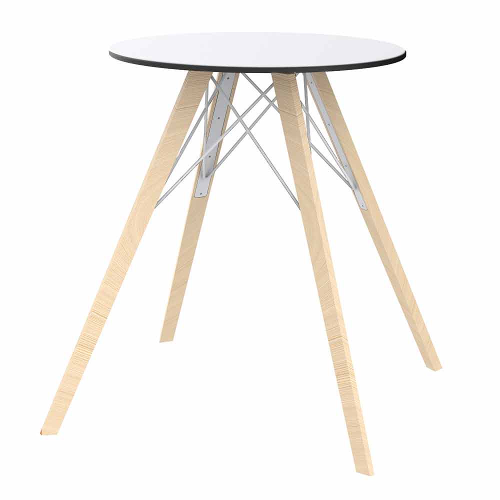 Masă rotundă din lemn de frasin și blat alb sau negru și 3 dimensiuni, 4 bucăți.