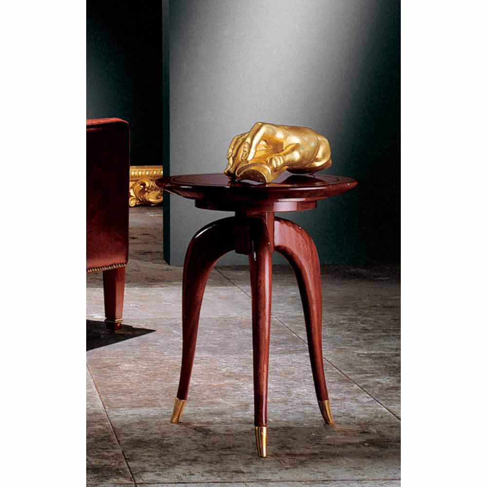 Masa rotunda cu trei picioare. A terminat în mahon lustruit naturale.