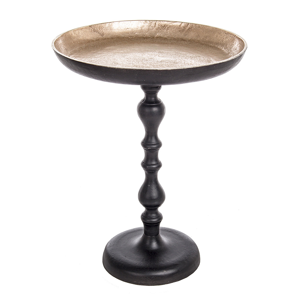Masuta de cafea rotunda din aluminiu placat si anticat de design clasic.