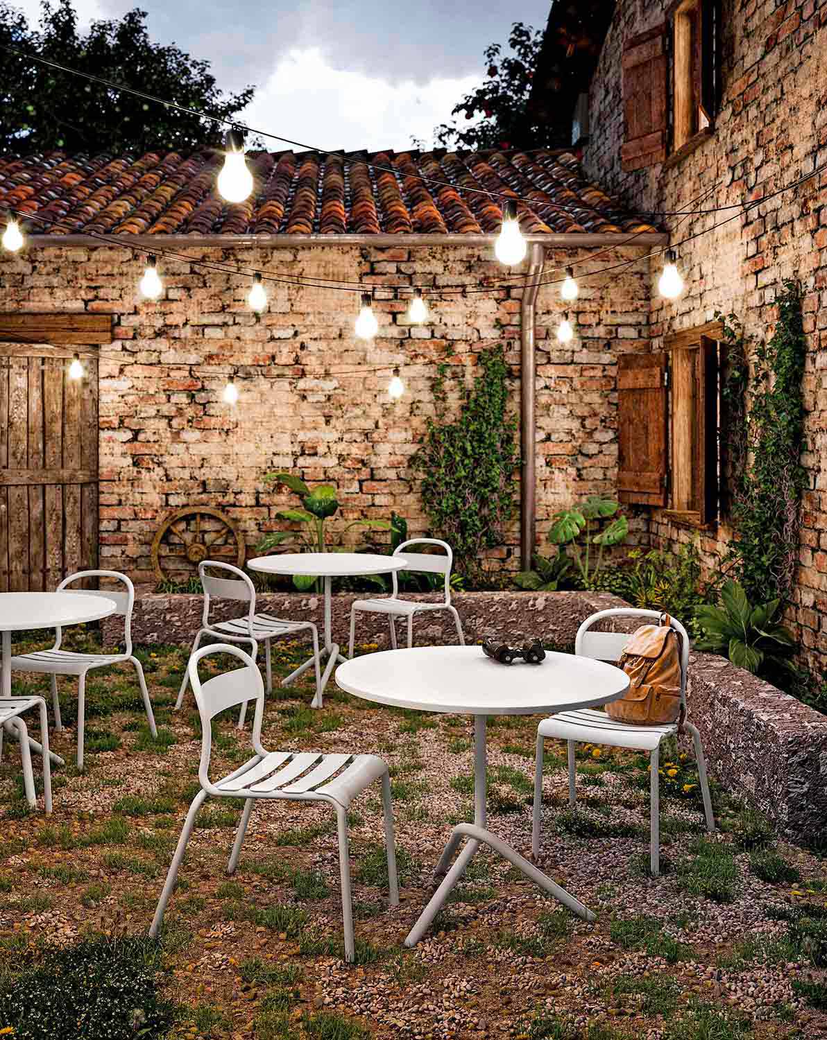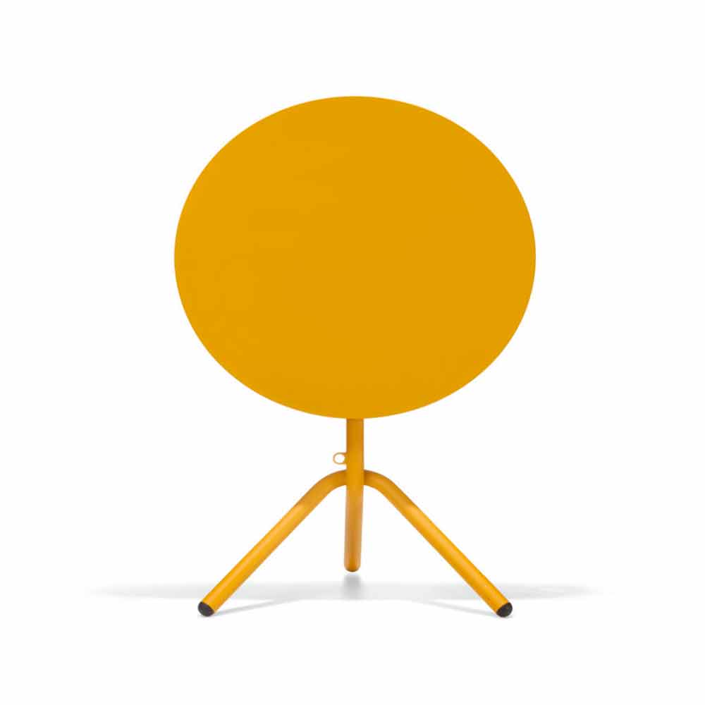 Masă rotundă de grădină, cu un design inovator și modern, realizată cu o structură metalică tubulară , care iese în evidență datorită particularității picioarelor întrețesute care o fac robustă și solidă în același timp. Partea de sus este realizată în schimb din tablă disponibilă în 6 variante de culoare și în două diametre diferite, permițându-i astfel adaptarea la orice mediu dând culoare și vioiciune. Este un articol care poate fi rabatat în mod convenabil și stivuit pe orizontală, făcând astfel posibilă optimizarea spațiilor în cel mai bun mod.