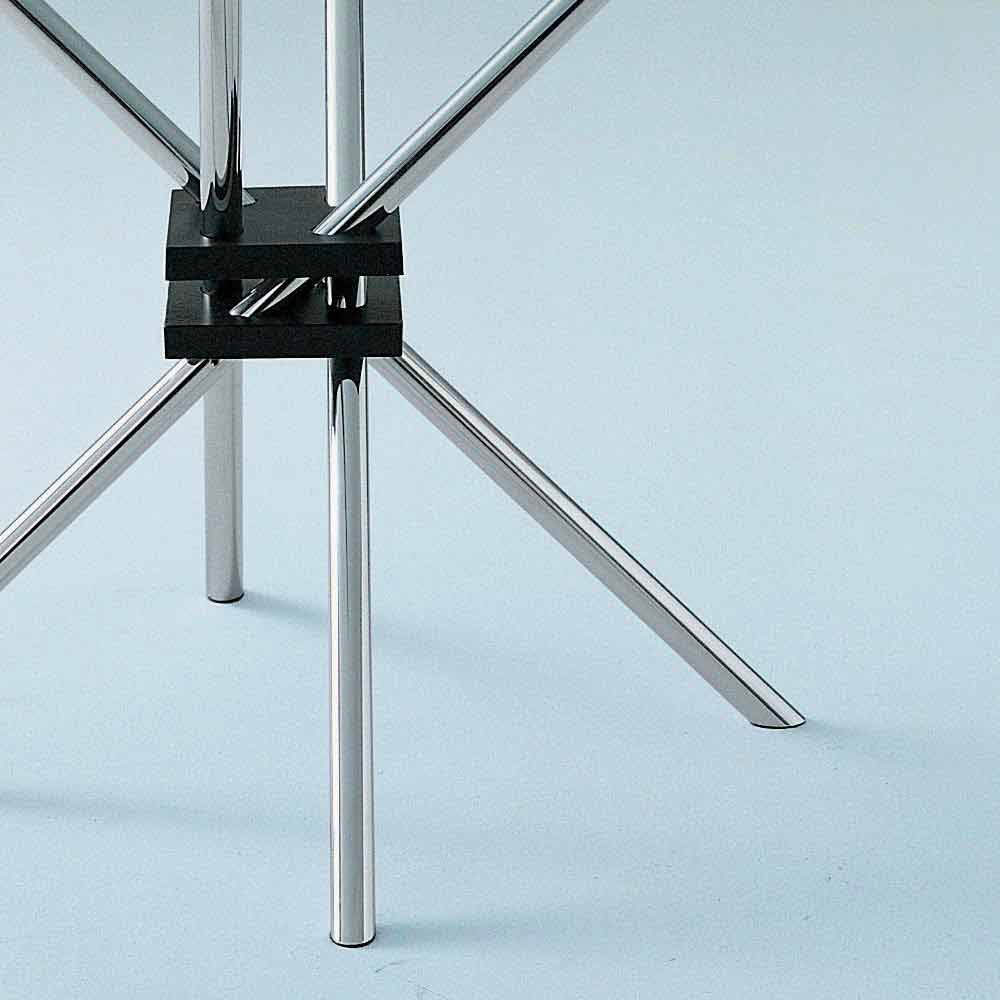 Masă de luat masa cu blat rotund din sticlă călită (grosime 12 mm), bază din oțel cromat și îmbinare din aluminiu turnat negru. Simplitatea și designul sunt caracteristicile speciale ale acestui accesoriu de mobilier modern realizat în întregime în Italia, conceput și conceput pentru a cuceri centrul oricărei săli de mese sau bucătărie cu un stil contemporan datorită personalității sale versatile și esențialității sale extreme. Blatul din sticlă conferă produsului eleganță și caracter, în timp ce baza din oțel asigură un produs solid și durabil datorită utilizării materialelor de calitate . Rezultatul este o masă sobră și elegantă, capabilă să caracterizeze orice situație stilistică cu o notă exclusivă și rafinată .