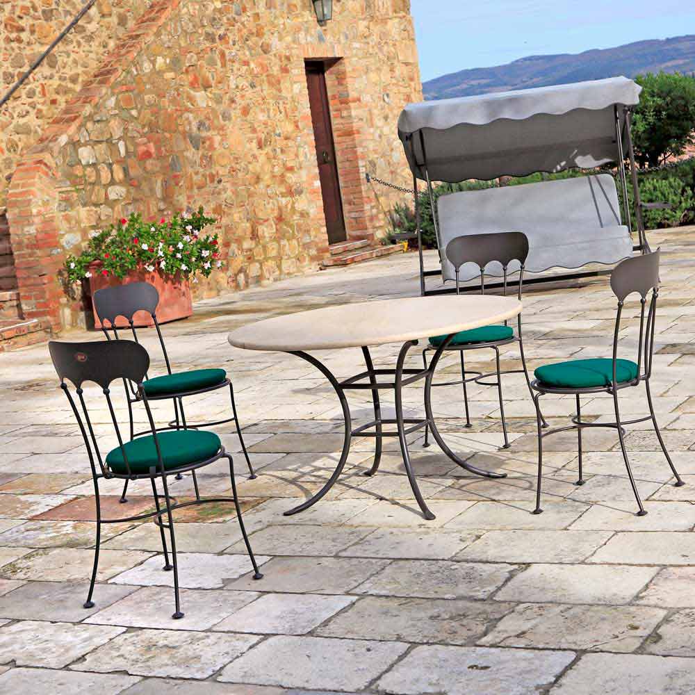 Masă de exterior fabricată în Italia, cu bază din fier vopsit cu finisaj antracit și blat rotund din travertin ușor . O idee de mobilier care amintește de un stil mai clasic grație utilizării materialelor și finisajelor cu un suflet antic. Structura oferă produsului o stabilitate optimă, în timp ce tratamentul de zincare la cald îl face deosebit de rezistent la orice tip de coroziune, garantând rezistența la rugină a metalului de zeci de ani și îmbogățind estetica acestuia cu un strat cu o textură aspră care îmbunătățește aroma antică a acestuia. forme. Măiestria 100% italiană, împreună cu atenția acordată detaliilor, subliniază și mai mult valoarea și valoarea acestuia, oferind astfel un produs final de înaltă calitate capabil să caracterizeze orice spațiu în aer liber datorită personalității sale puternice clasice și eleganței fără timp a blatului de travertin care oferă masa estetica sa de modă veche.
