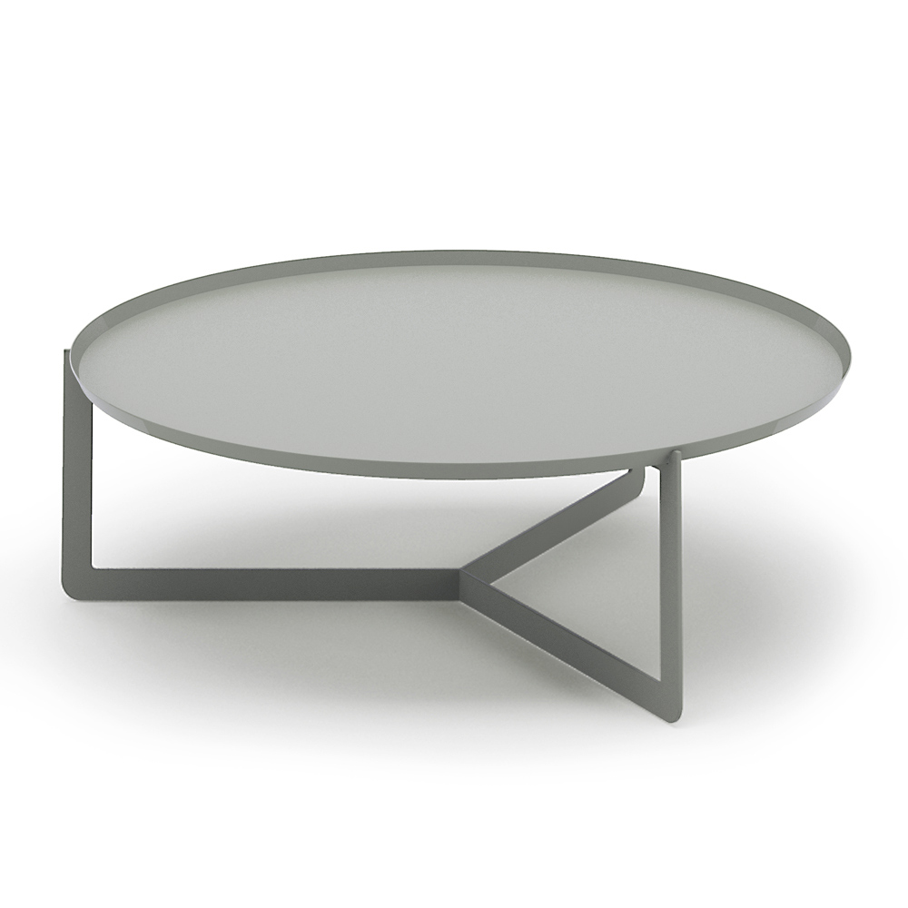 Măsuță de cafea rotundă modernă din grădină, realizată din metal, un obiect valoros realizat în Italia.