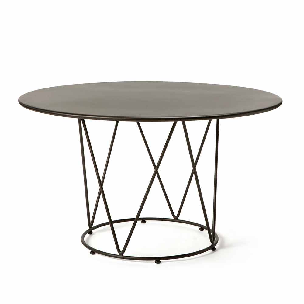 Masă rotundă modernă pentru exterior, realizată în întregime din fier galvanizat vopsit în câmp electrostatic, fabricată în Italia.