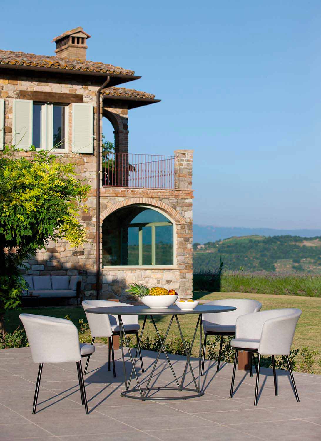 Această linie de produse Made in Italy este caracterizată de un gust contemporan, unde elementul central este utilizarea unor linii și forme geometrice esențiale, care creează atmosfere dinamice și în același timp funcționale și care fac ca fiecare piesă să fie ușor integrabilă în orice mediu exterior. Fiecare produs din această linie se dovedește ideal pentru completarea mobilării mediilor exterioare, asigurând o fuziune perfectă între funcționalitate și aspectul vizual și decorativ, datorită materialelor de înaltă calitate și tehnicilor inovatoare care conferă un finisaj mat minunat.