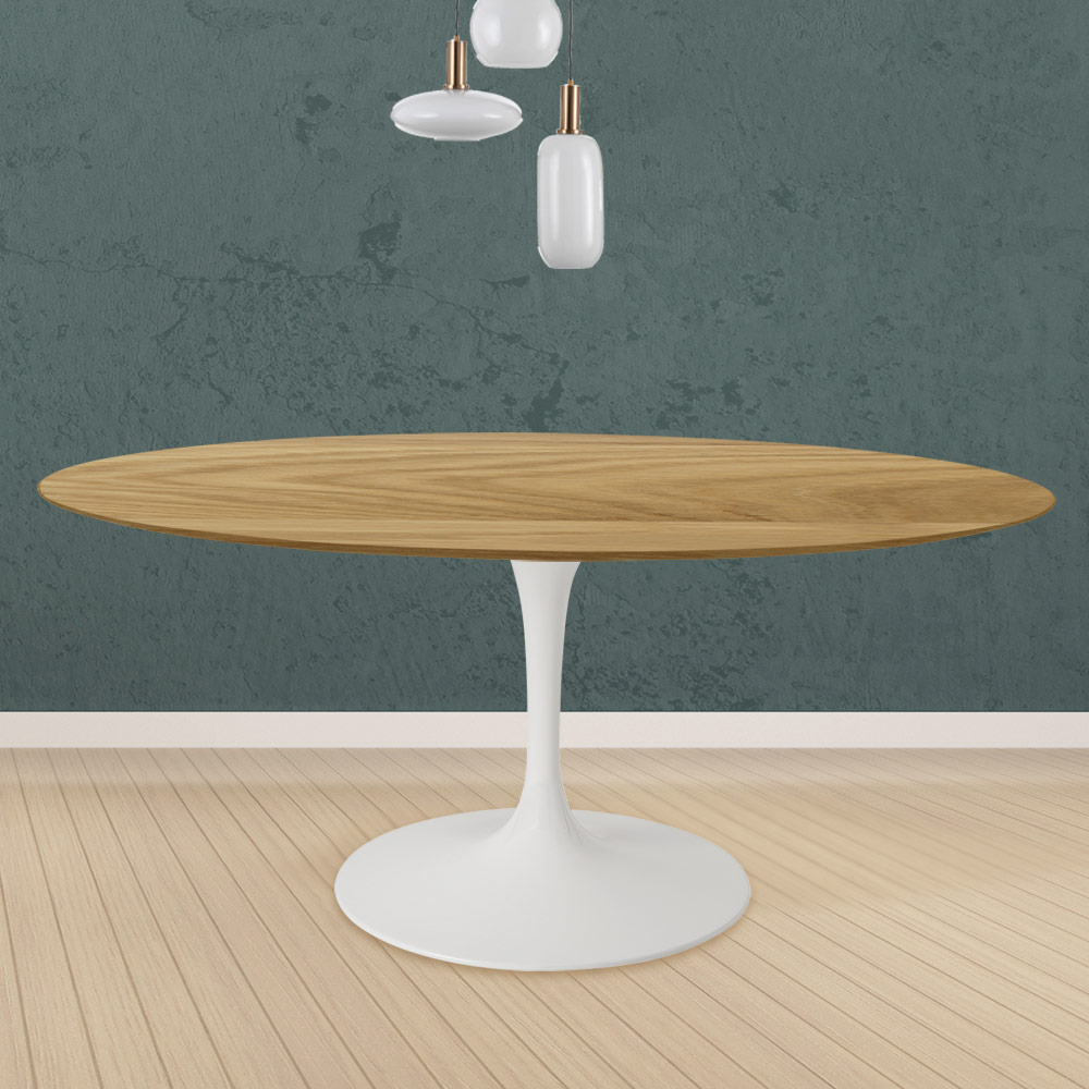 Masă de dining rotundă din stejar natural și bază din aluminiu lustruit Made in Italy