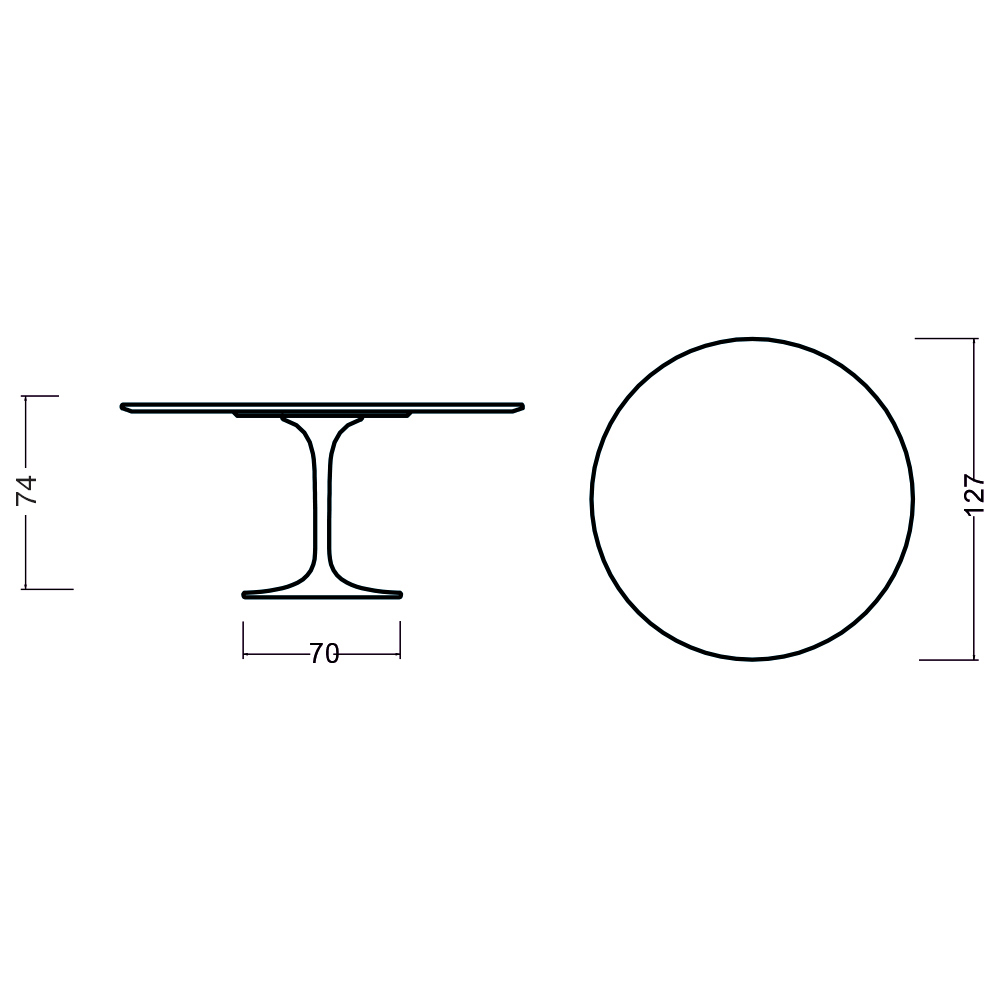 - Topul mesei diametru 137 x înălțime 74 cm / Diametrul bazei 70 cm