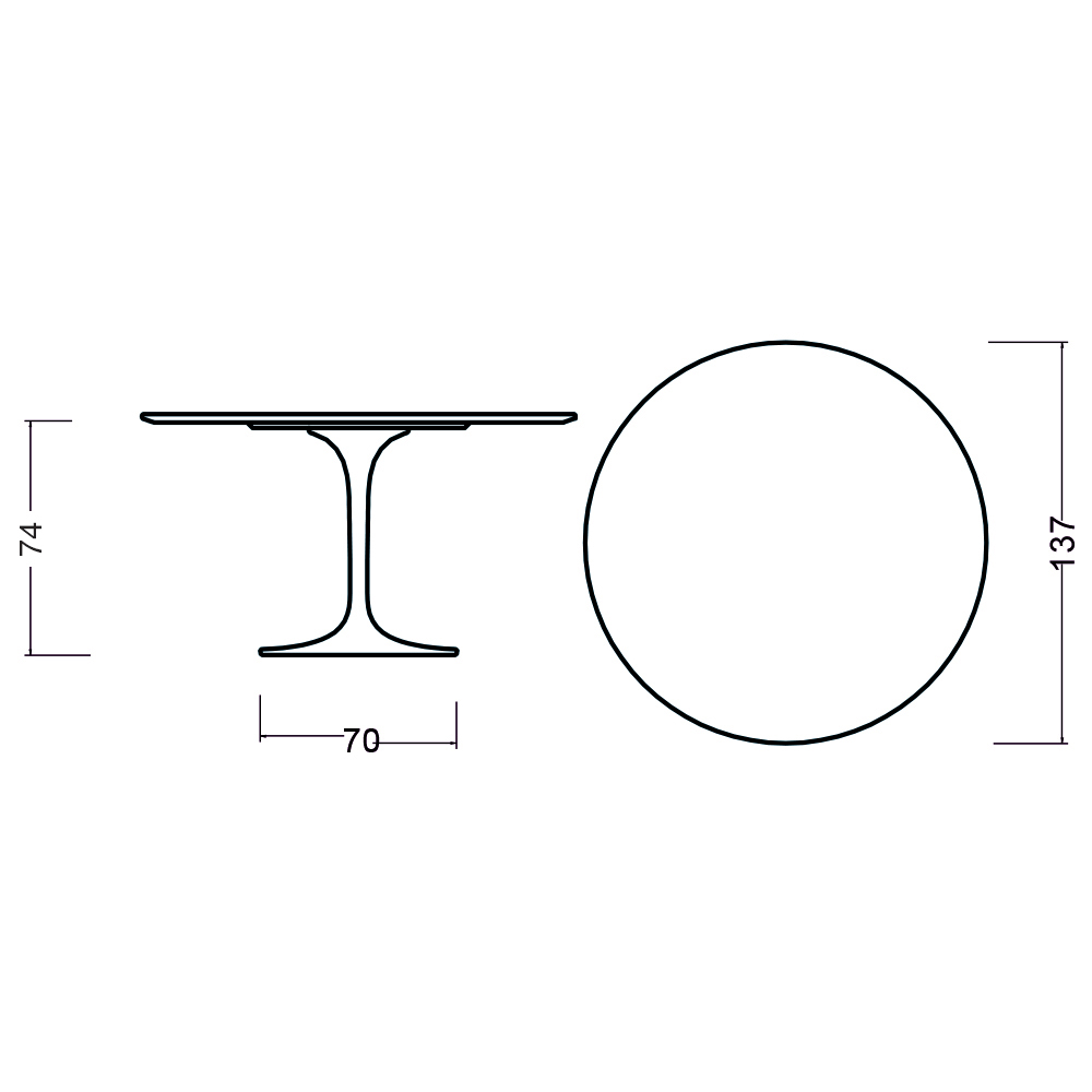 - Topul mesei diametru 137 x înălțime 74 cm / Diametrul bazei 70 cm