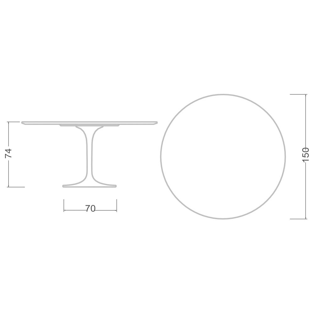 - Diametrul blatului 150 x H 73 cm / Diametrul bazei 70 cm