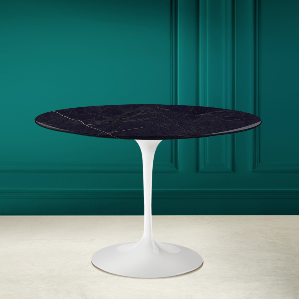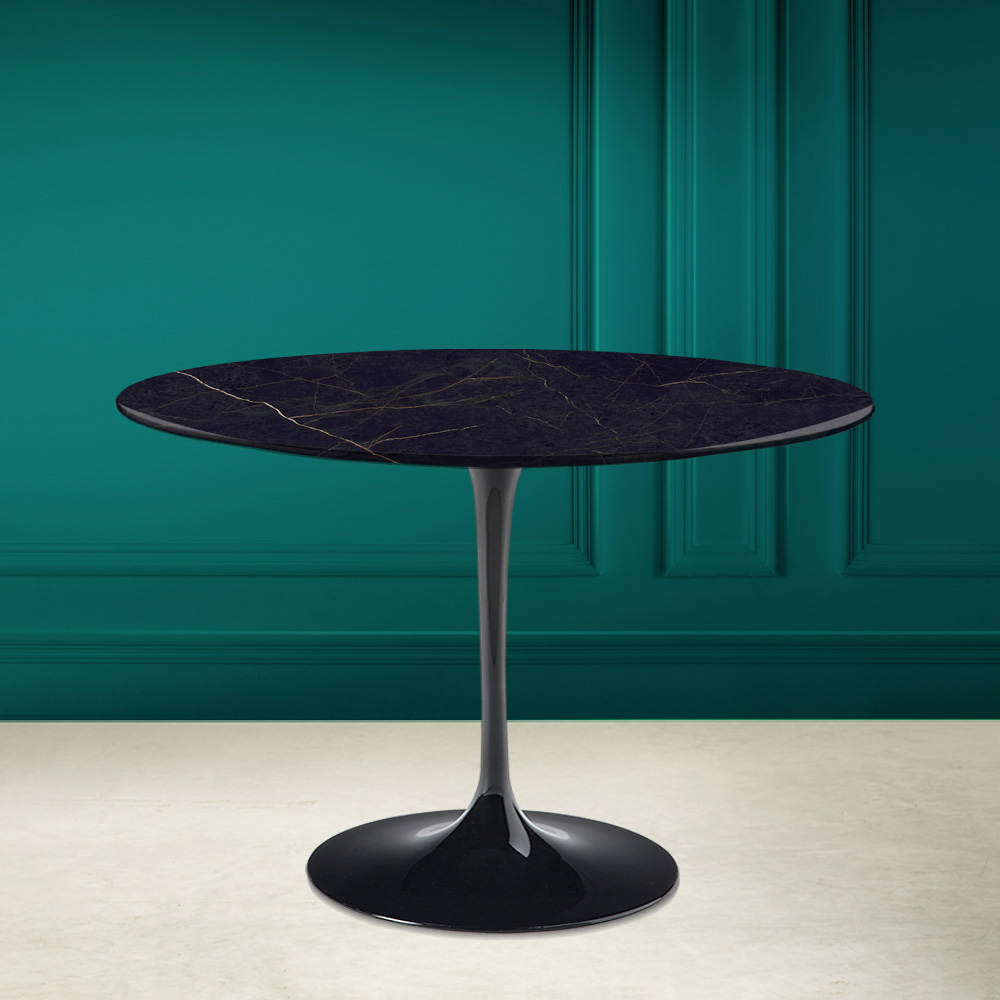 Masă de masă cu blat rotund din ceramică noir laurent și bază din aluminiu lustruit Made in Italy
