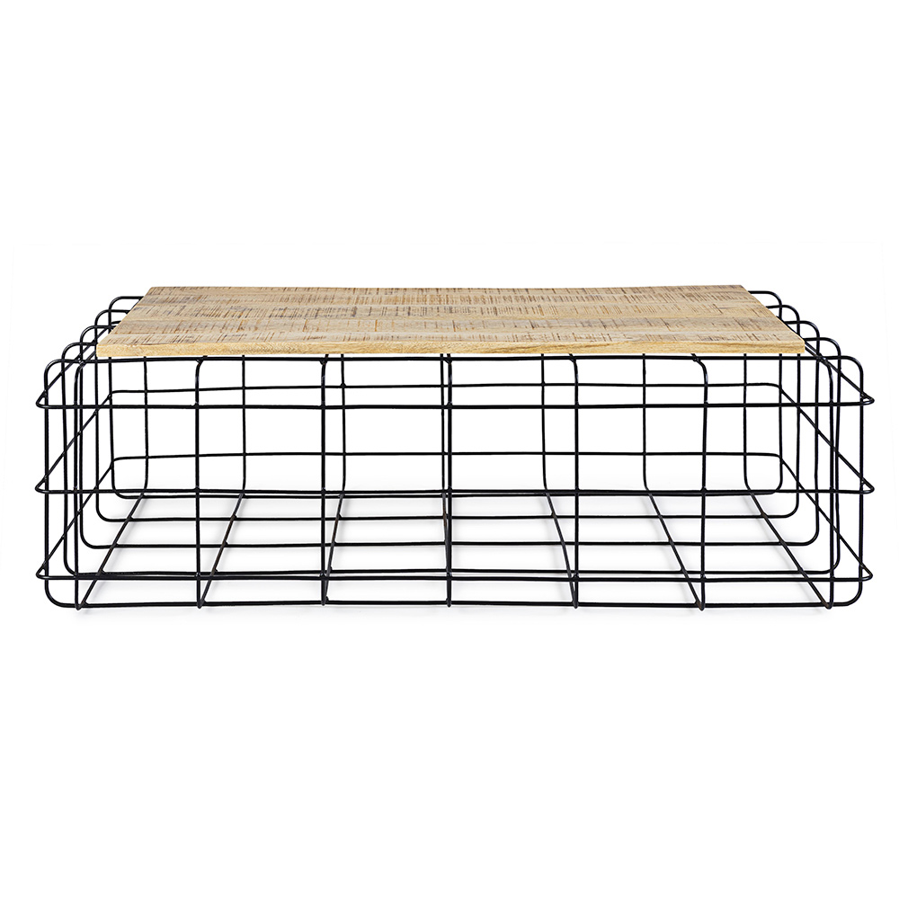 Masuta de cafea dreptunghiulara din otel si lemn de mango, design industrial.