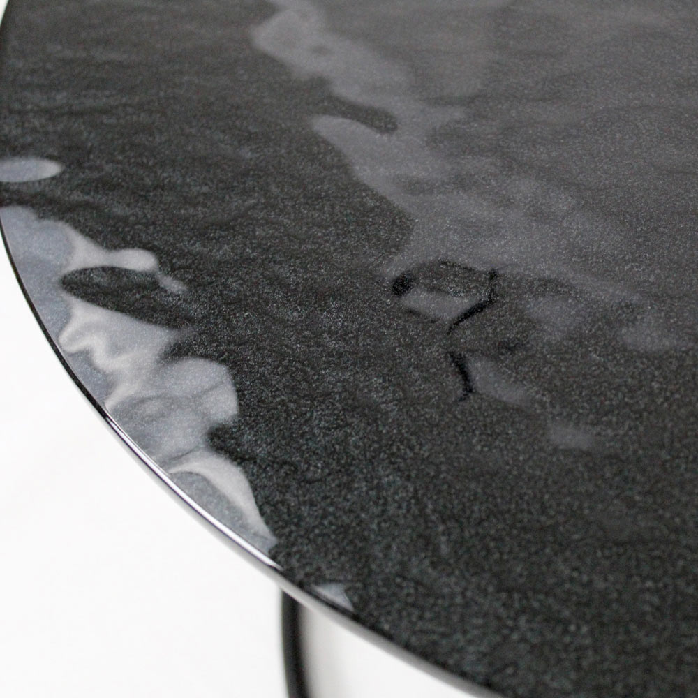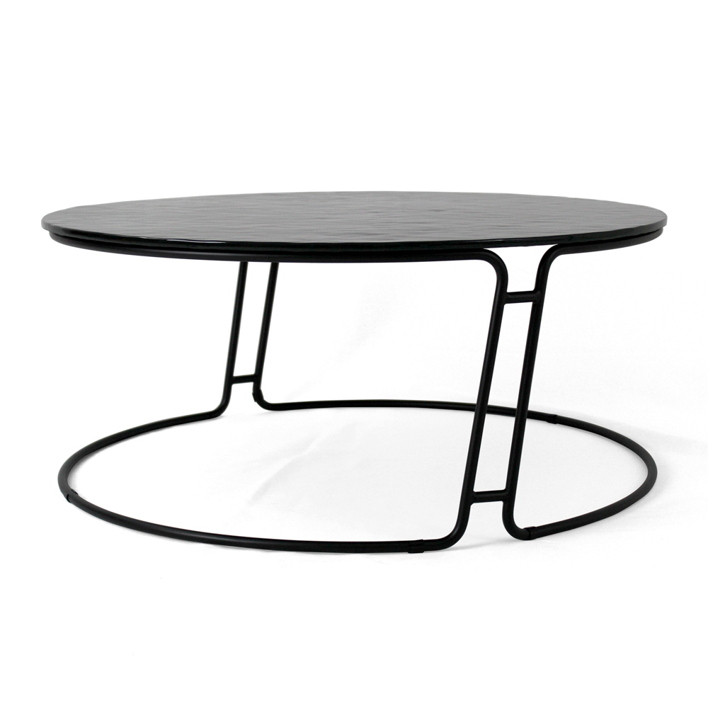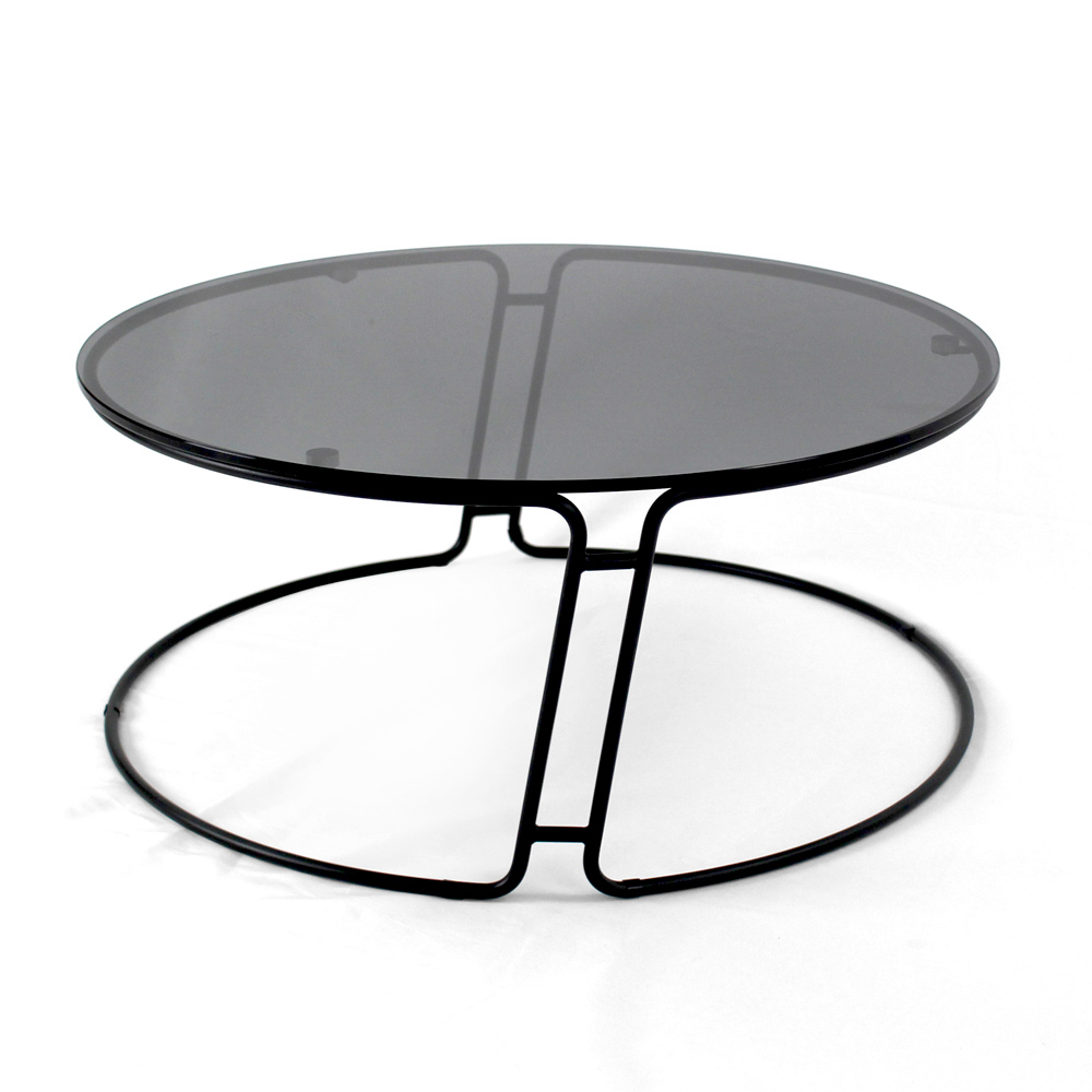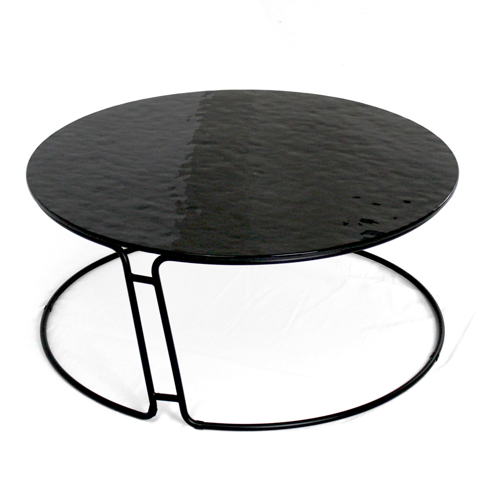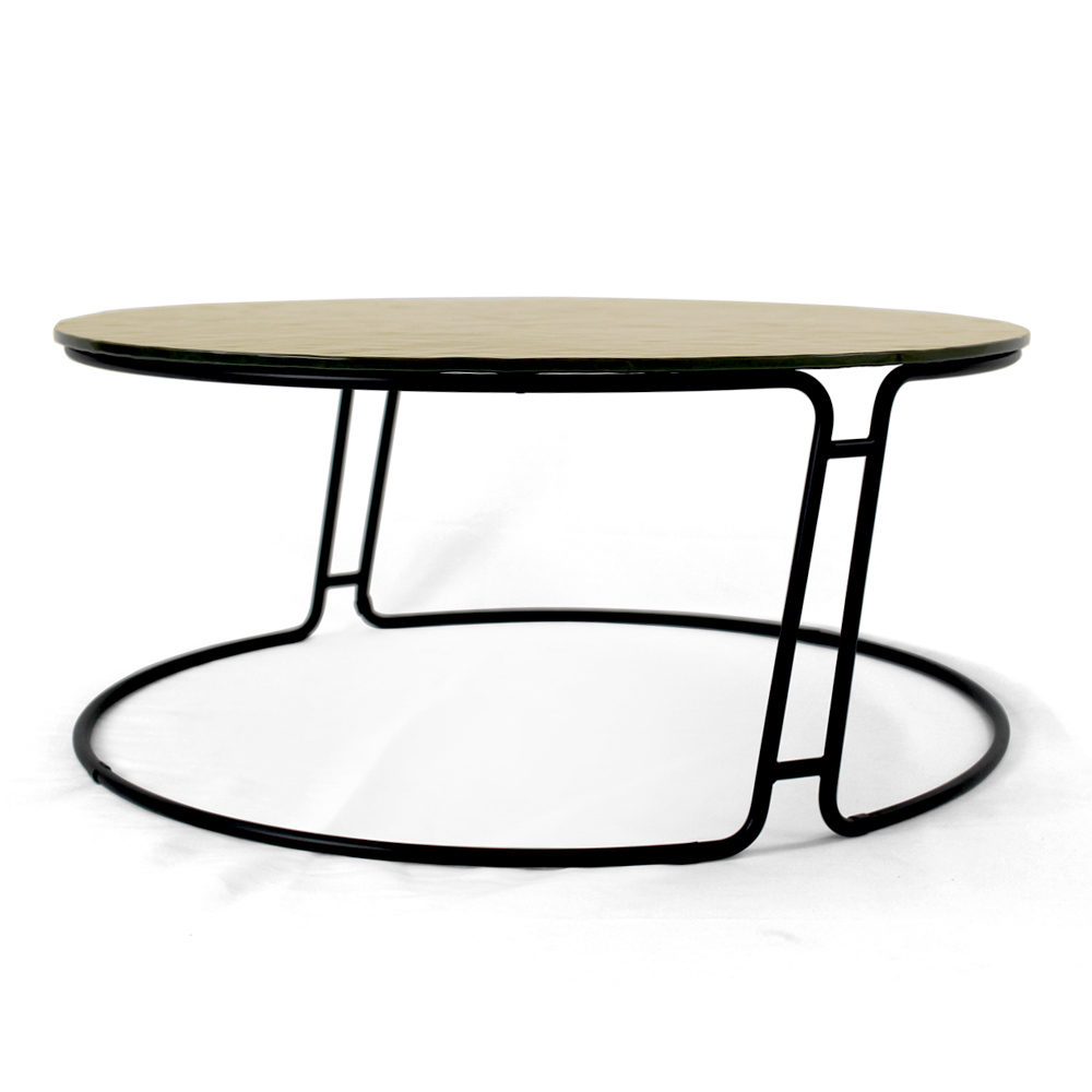 Masuta de cafea rotunda cu baza din otel vopsit si blat de sticla.