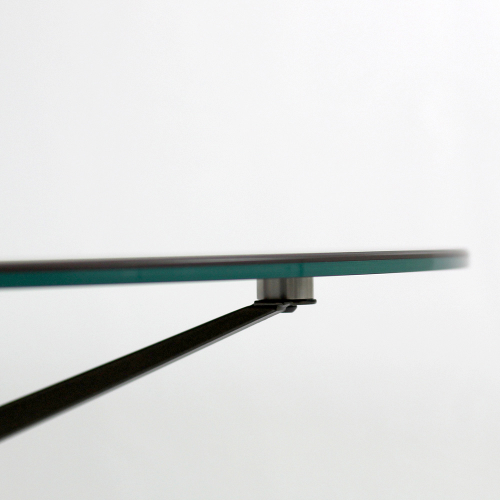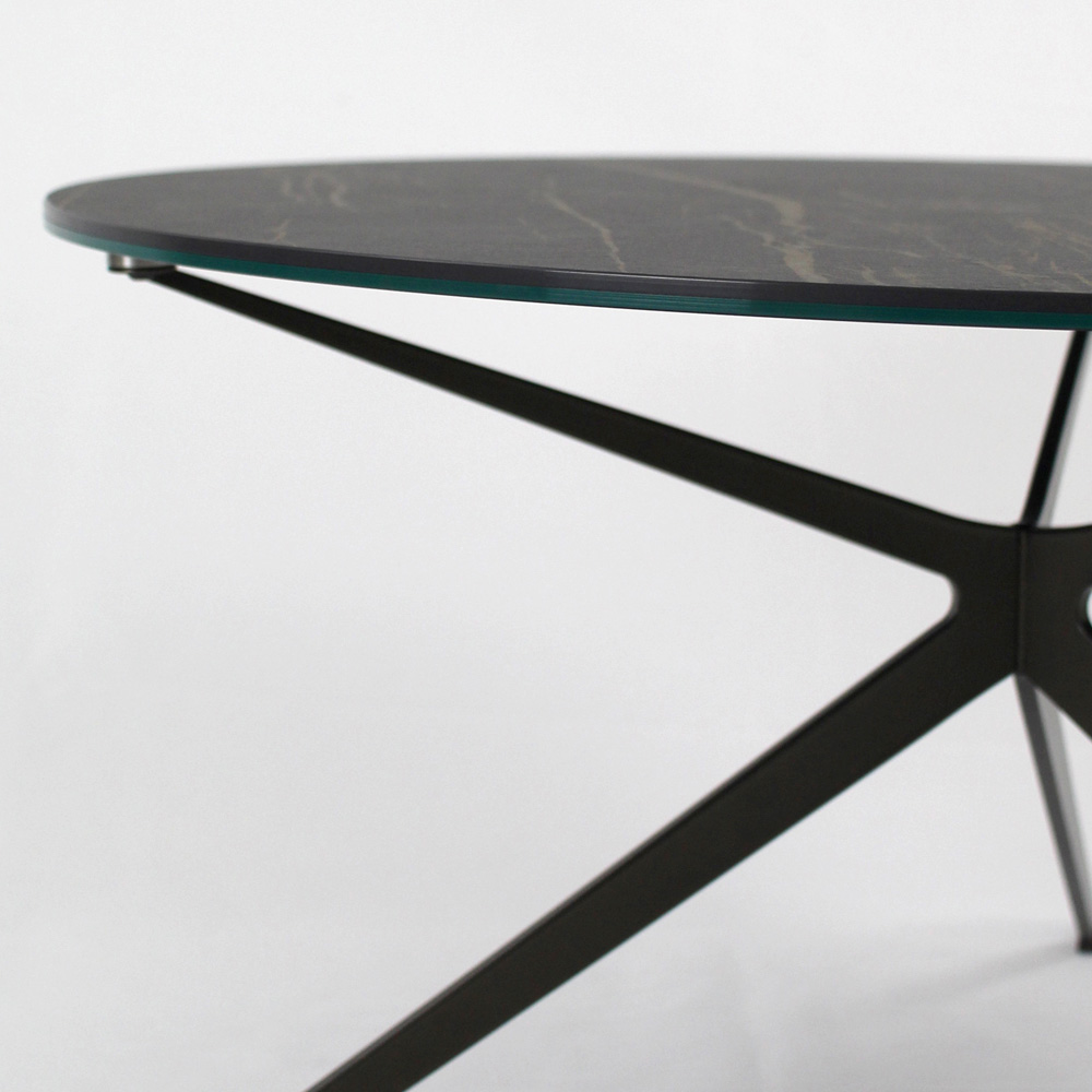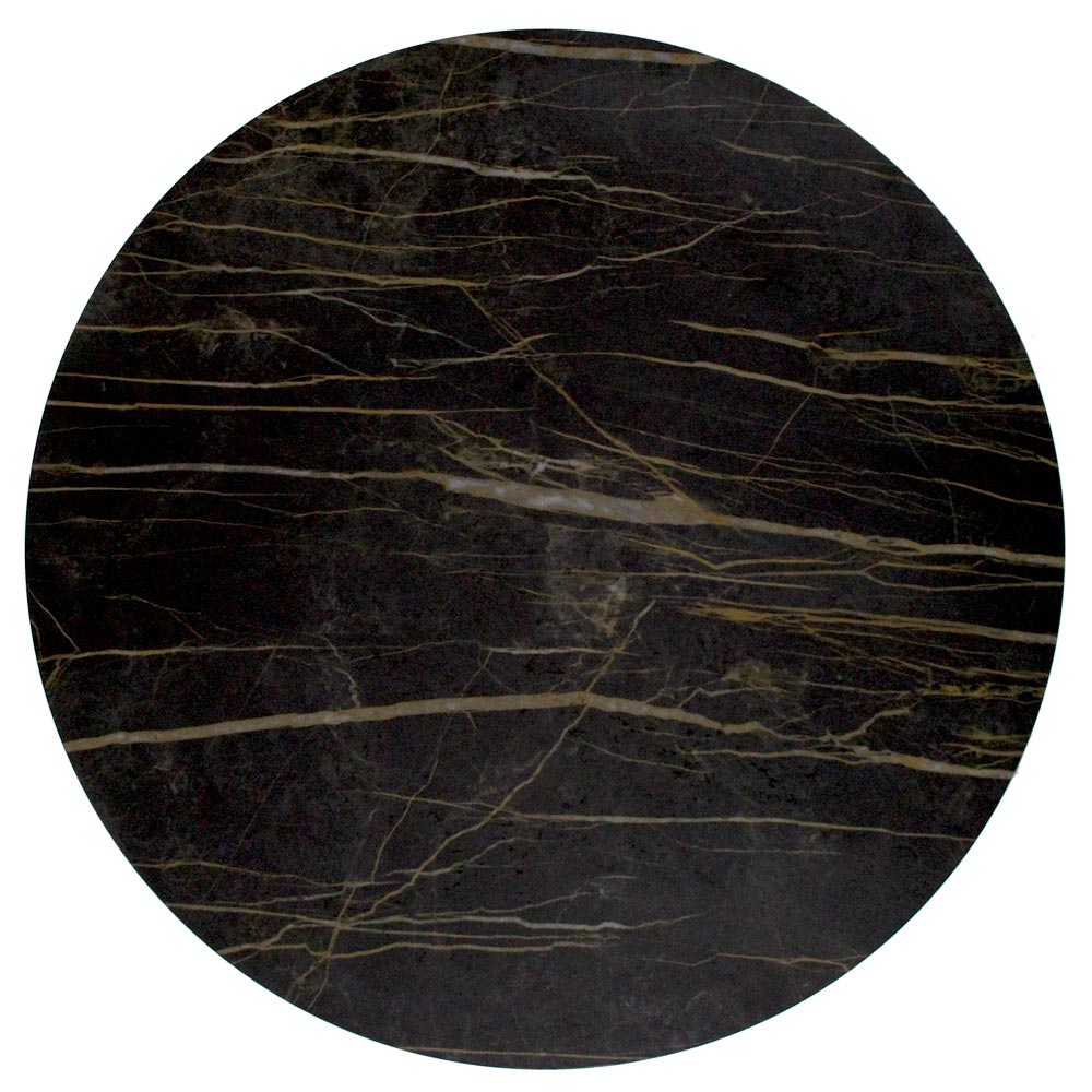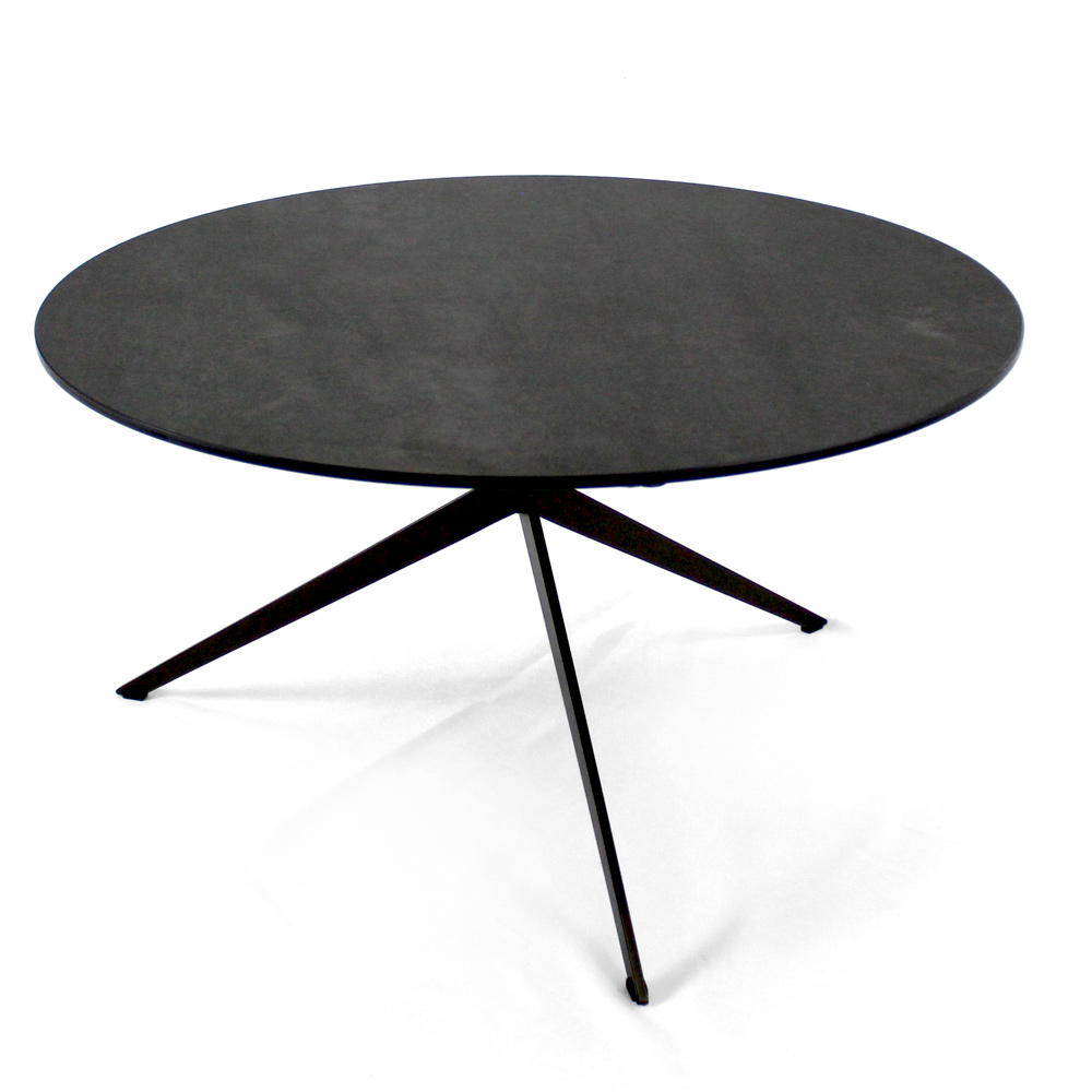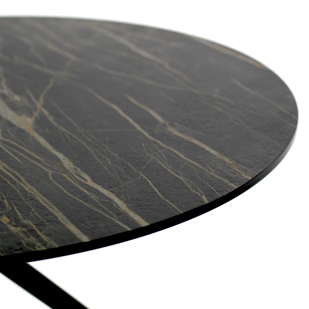 Masuta de cafea rotunda cu baza din otel vopsit si blat din gresie portelanata.