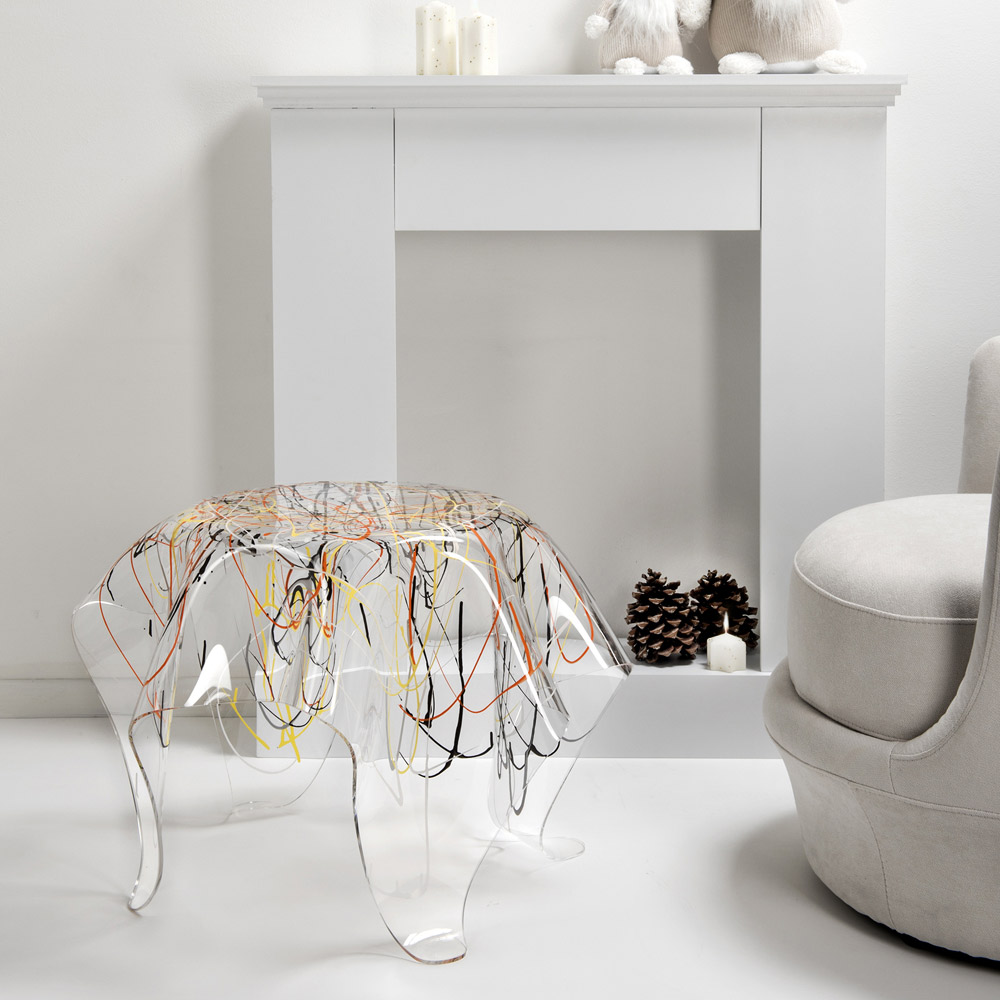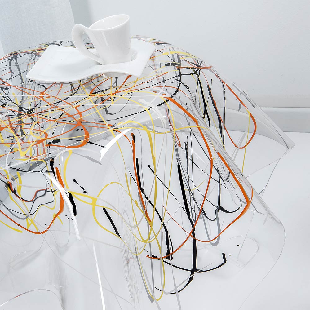 Masuta de cafea din plexiglas cu draperii lucrate manual Made in Italy.