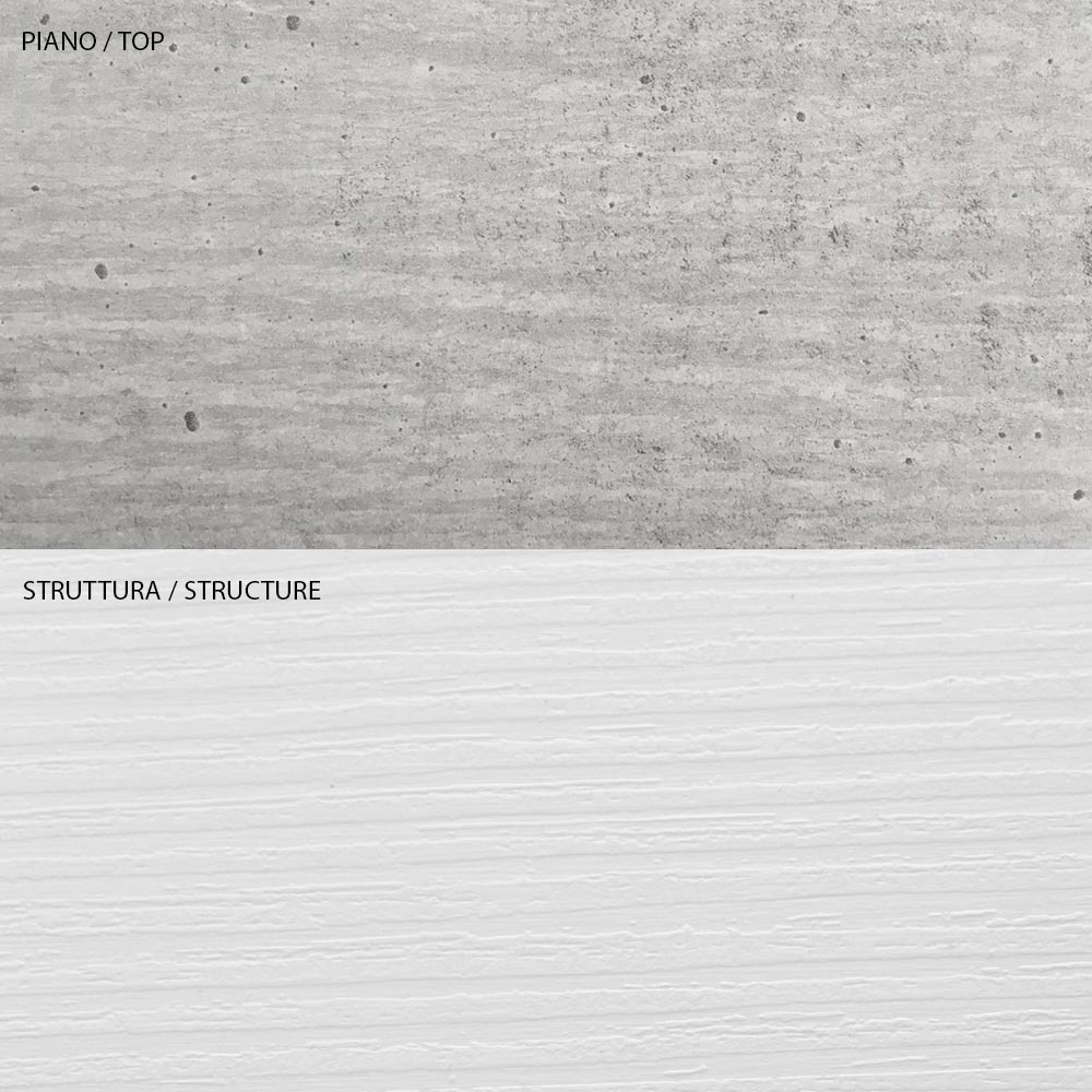 - Structura cu finisaj zada alb cu por deschis, blat si compartiment container finisat beton