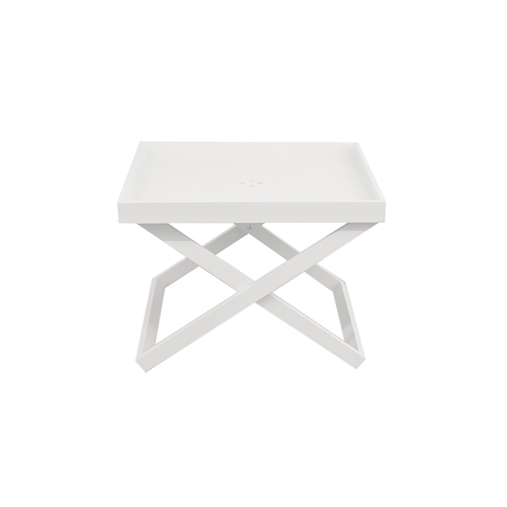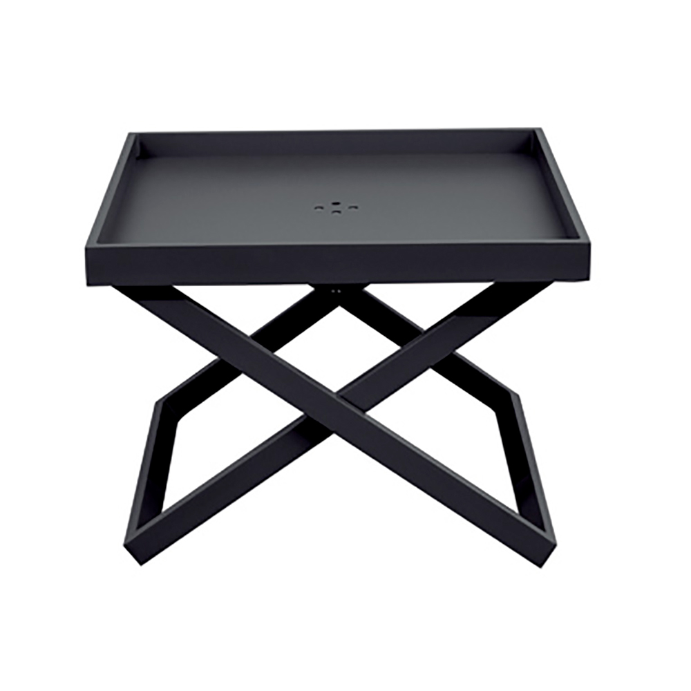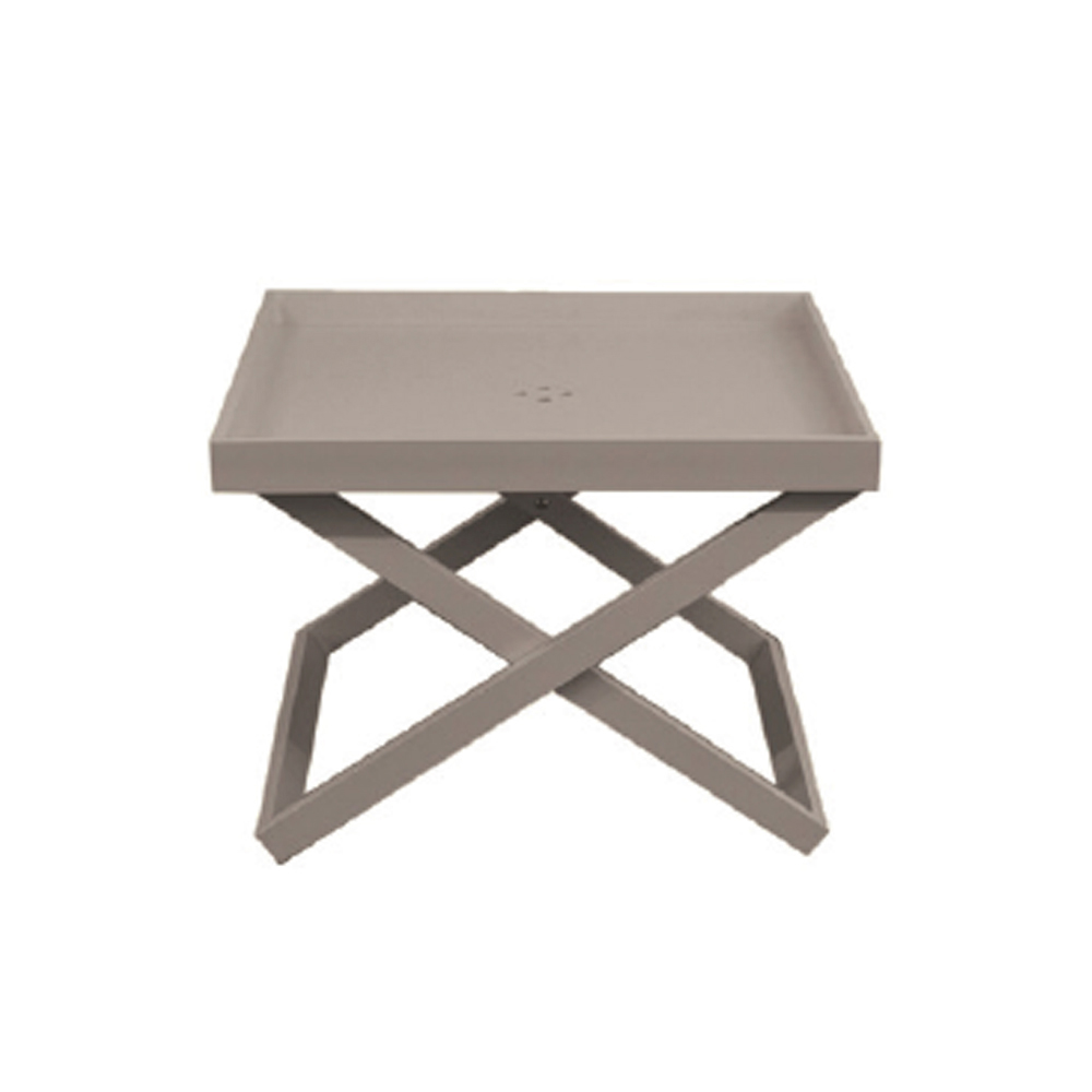 Masuta de cafea patrata de exterior cu tava detasabila si structura din aluminiu vopsita cu pulbere epoxidica.