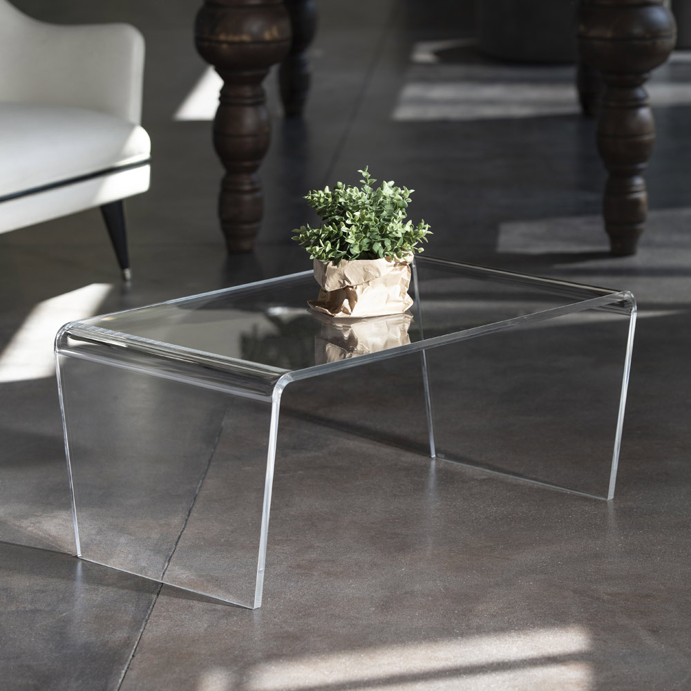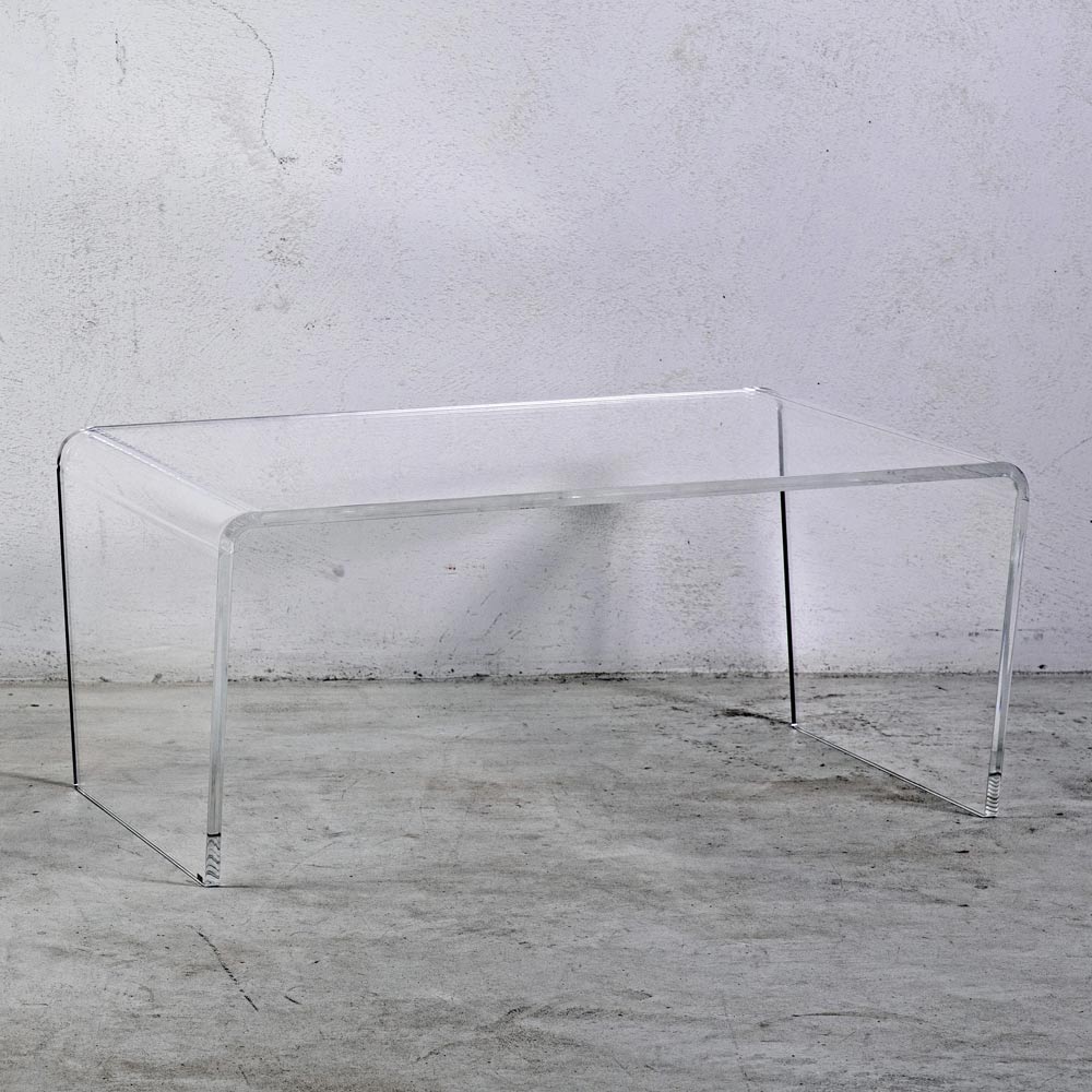 Masuta de cafea dreptunghiulara din cristal acrilic transparent pliat manual, fabricata in Italia.