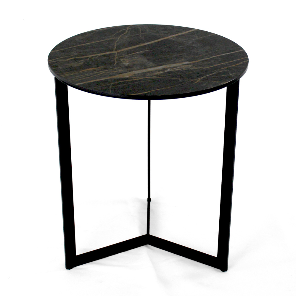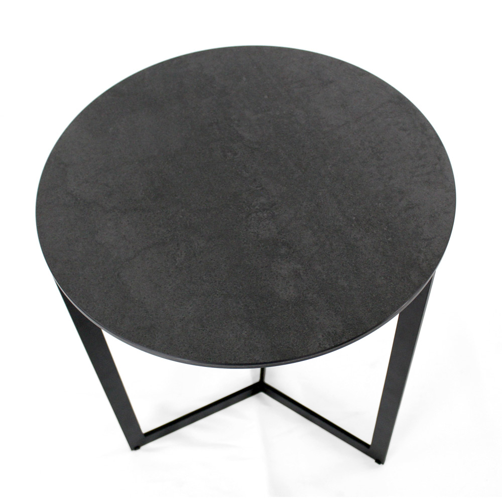 Mesă de cafea rotundă cu bază din oțel vopsit și top din grès gresie porțelanată