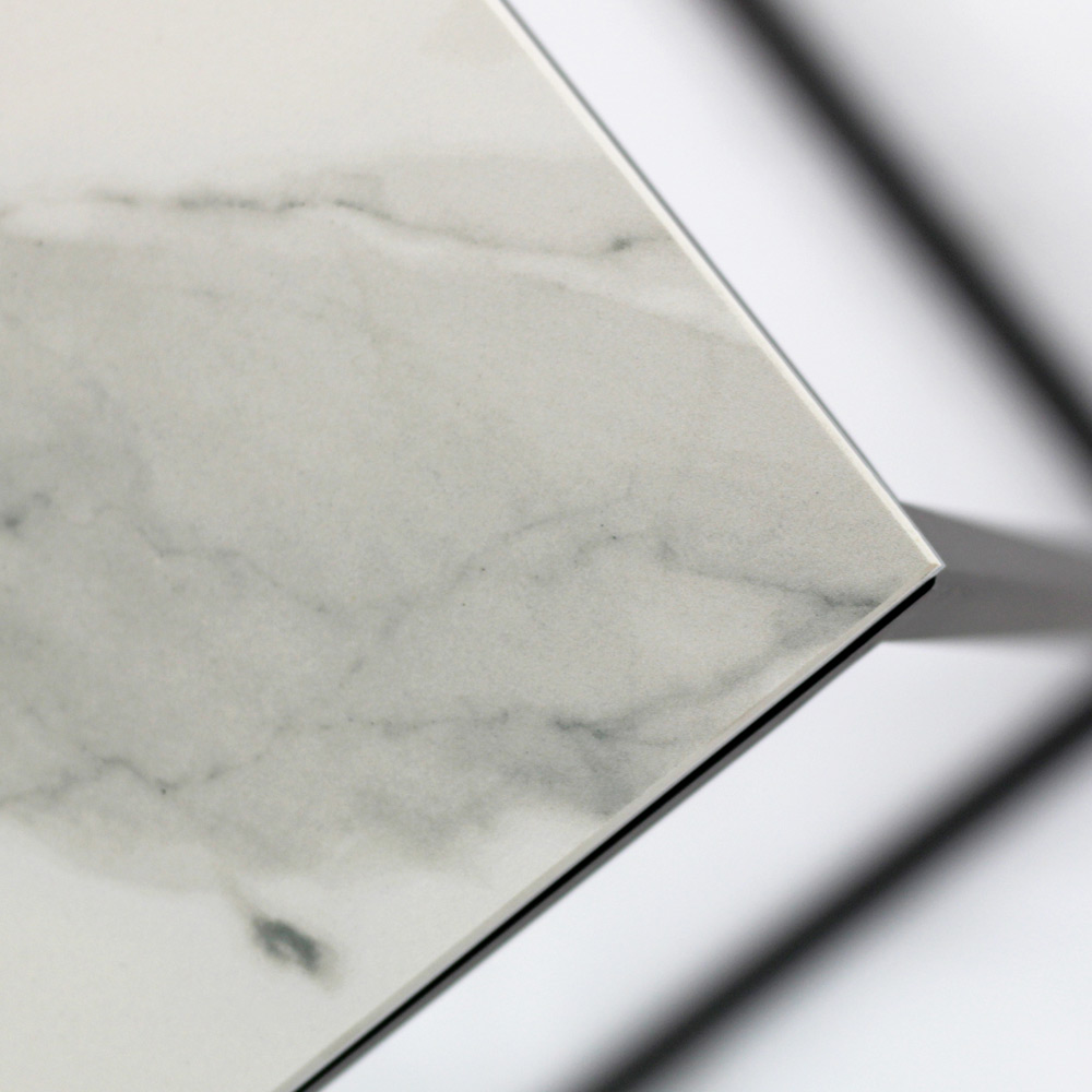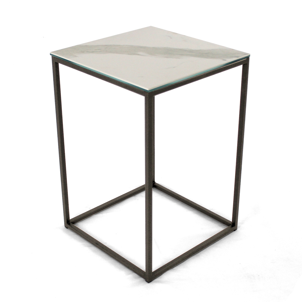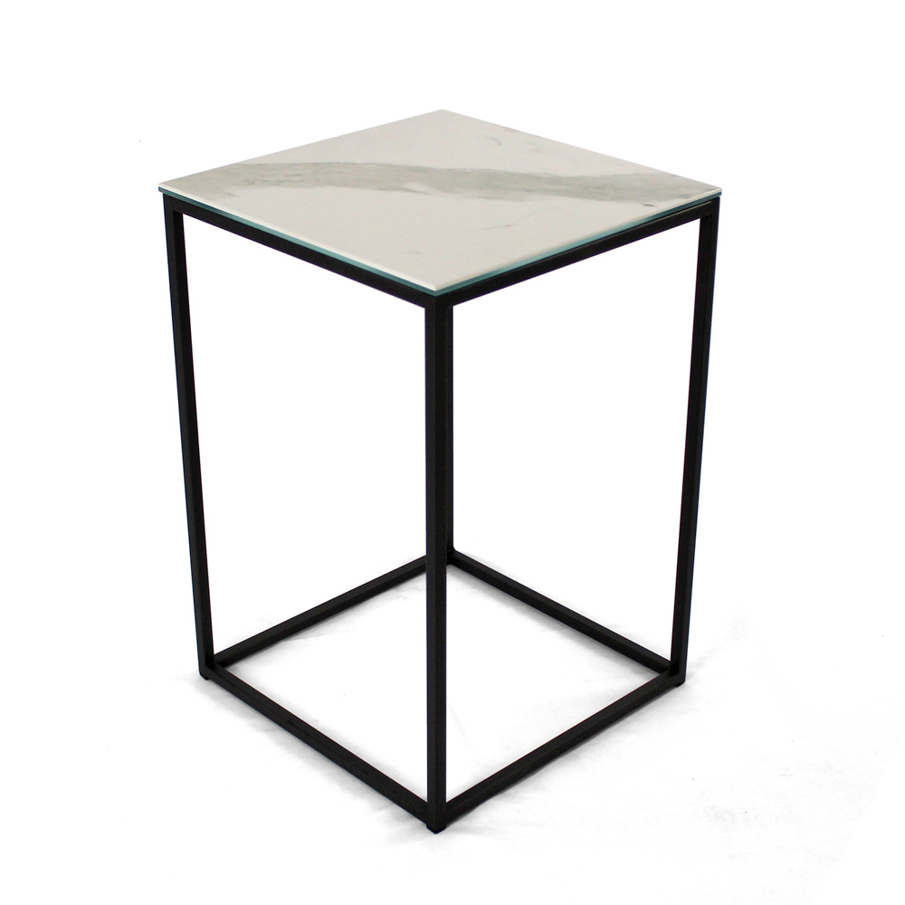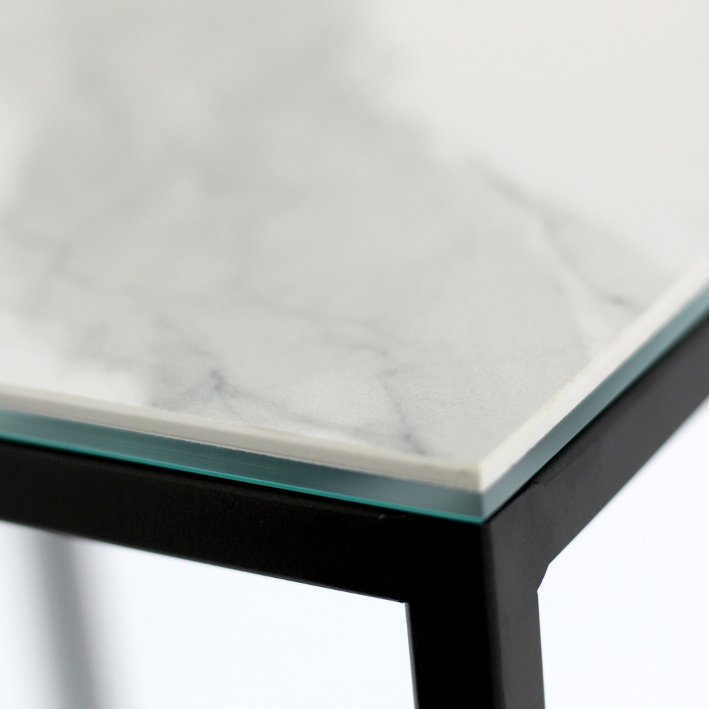 Masuta de cafea patrata cu baza din otel vopsit si blat din gresie albă statuară cu nervuri mate de 3 mm laminată cu sticlă float de 6 mm. Masutele de cafea in stil modern reprezinta piesa de mobilier perfecta pentru a completa decorul oricarui living si living. Aceste produse sunt unice, elegante si functionale in acelasi timp datorita finisajelor lor simple si armonioase care le fac potrivite pentru orice nevoie si ocazie de utilizare. Materialele folosite pentru constructie garanteaza o calitate si rezistenta mare chiar si cu trecerea timpului.