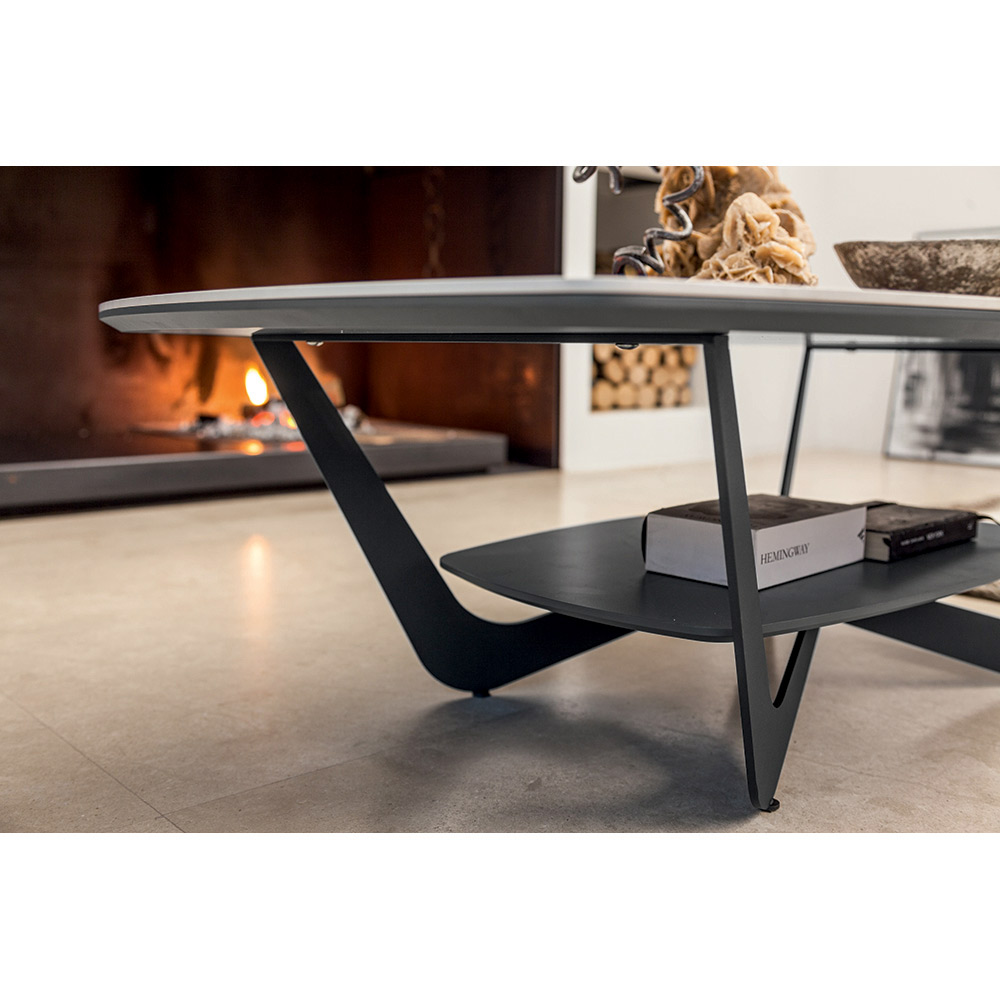 Masuta de cafea din metal si blat din ceramica lucioasa cu depozitare, fabricata in Italia.